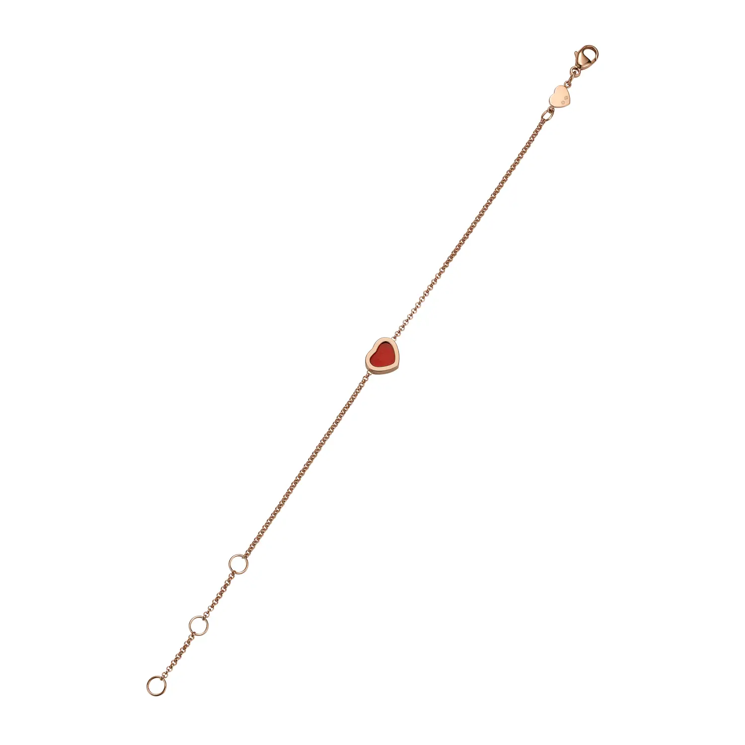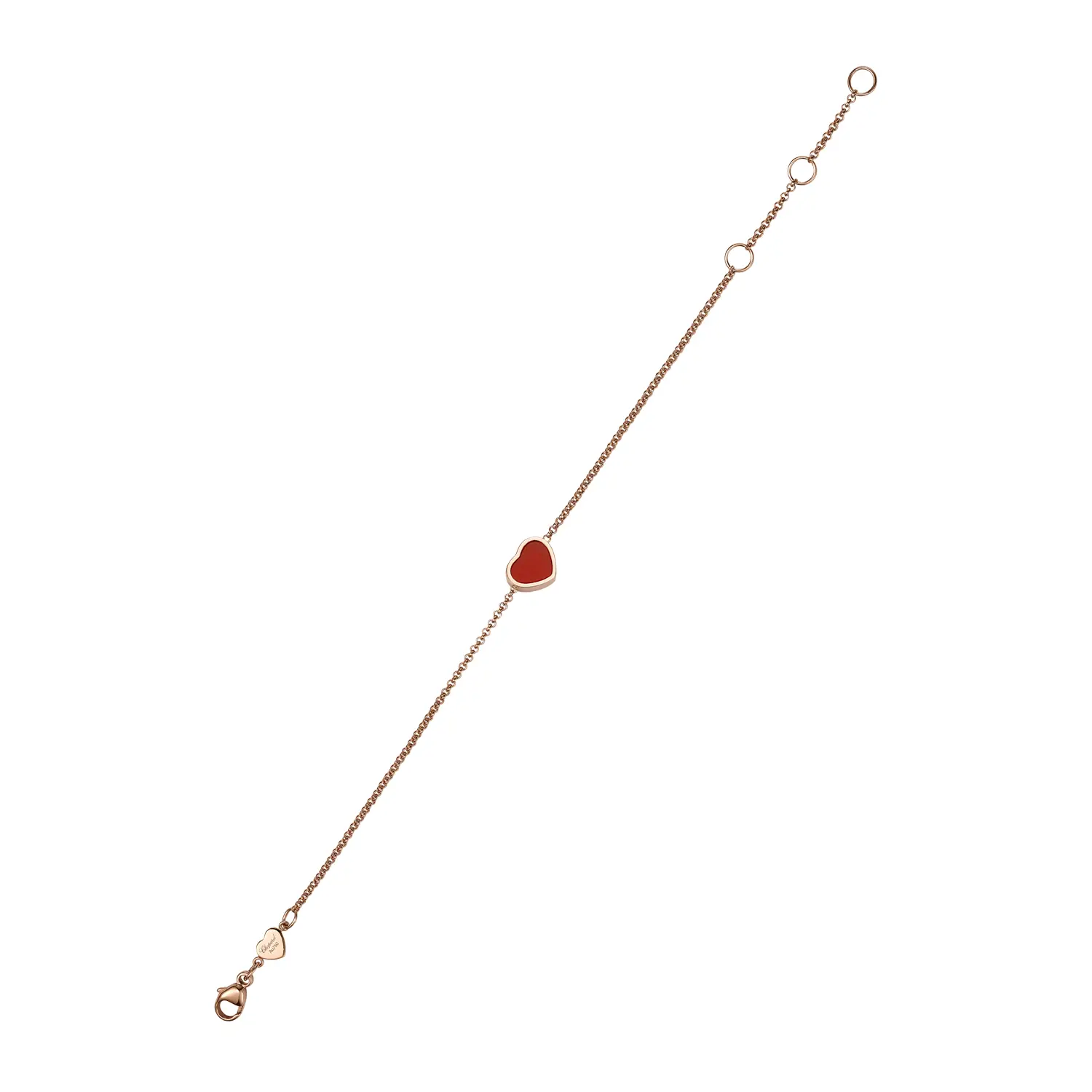 This charming bracelet from the My Happy Hearts collection embodies pure elegance and modern femininity. Crafted in 18 k rose gold and adorned with a carnelian heart, it captivates with its minimalist design and warm tones radiating positive energy. Every detail reflects Chopard’s philosophy of creating jewelry that connects beauty, emotion, and self-expression.