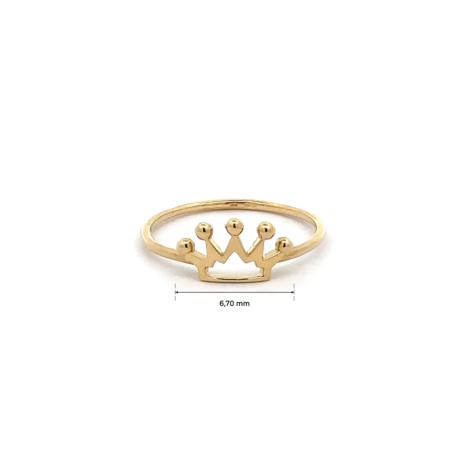 This elegant gold crown ring is a playful yet sophisticated piece that immediately draws attention with its delicate silhouette. Crafted from high-quality yellow gold, it feels light and airy, while the open crown motif adds a graceful and symbolic touch. Representing strength, confidence and individuality, the crown makes this ring a perfect choice for a woman who wants to express her uniqueness.