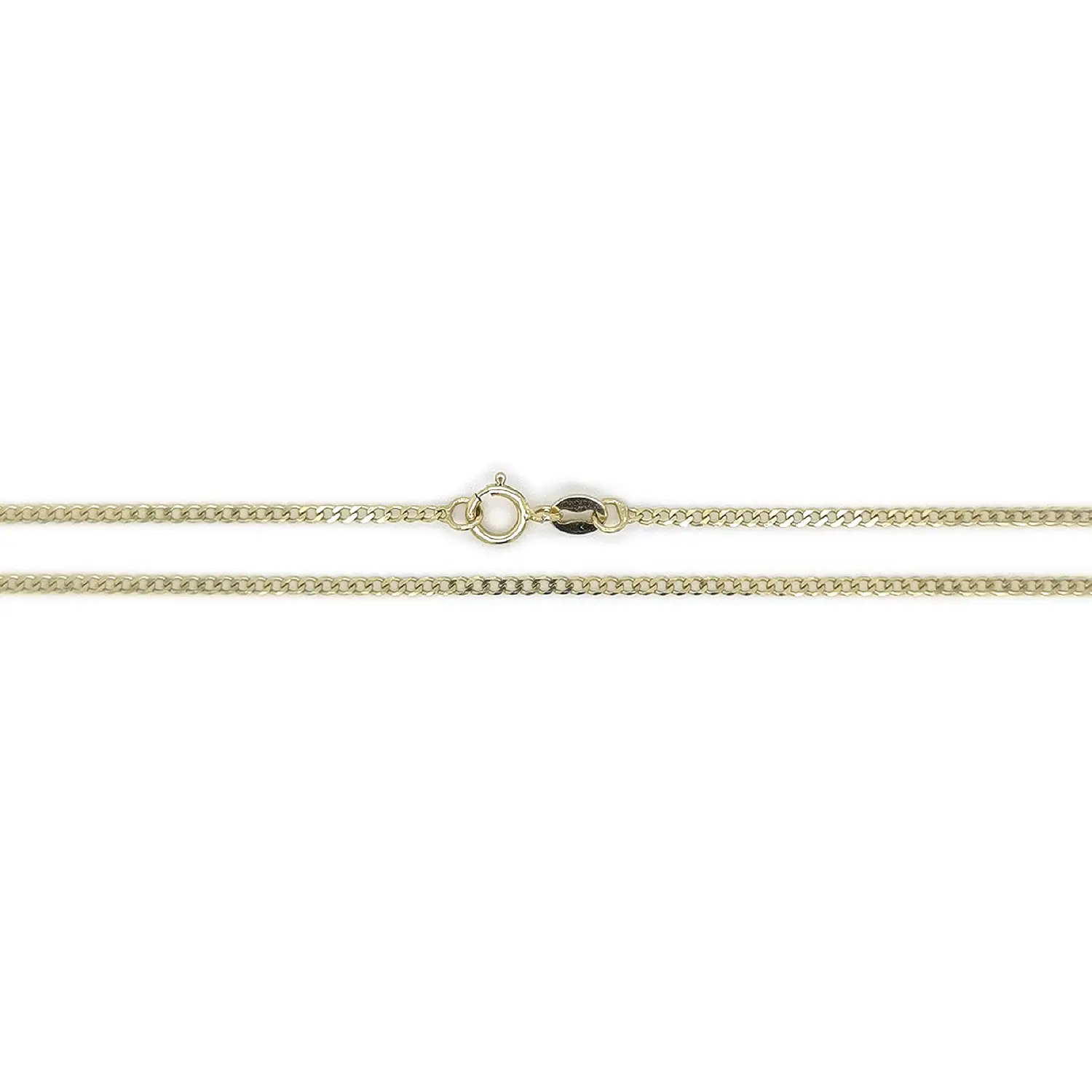 The gold curb chain is one of the most durable and timeless classic designs. Its flat, precisely polished links create a bold yet elegant look with a beautiful reflection of light, making it suitable for wearing on its own or with a pendant.