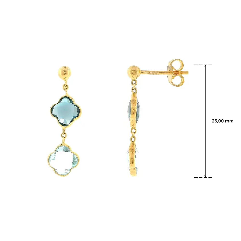 Discover timeless elegance with gold drop earrings with blue stones, captivating with their delicate color and refined design. The blue stones give the jewelry a fresh and luxurious look, making them a perfect addition to any outfit.
