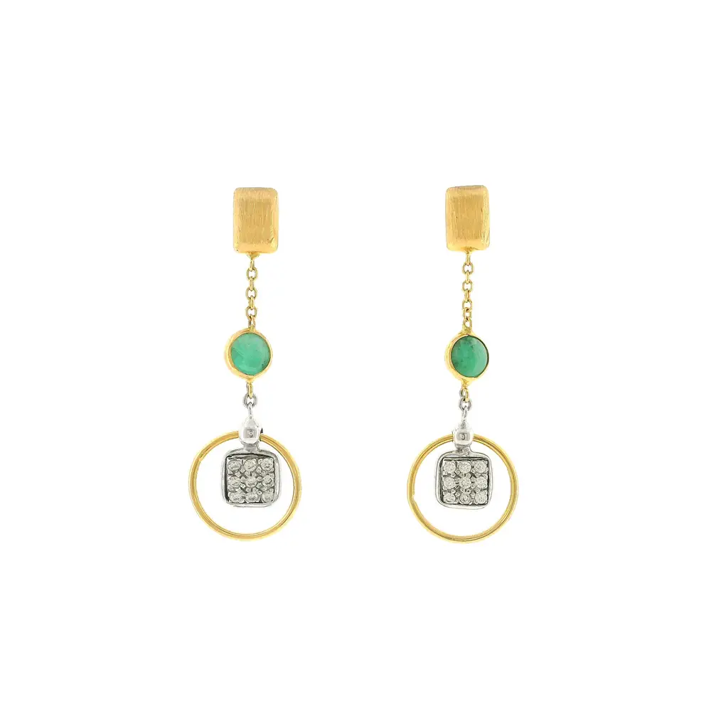 Elegant gold drop earrings with a green stone and zirconia captivate at first glance with their delicate yet eye-catching design. The combination of a fresh green stone and sparkling zirconia gives the jewelry a luxurious look, perfect for everyday wear as well as special occasions.