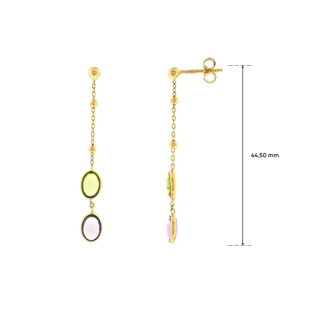 Discover elegance with gold drop earrings with multicolored stones, featuring a delicate blend of shades and a timeless design. These earrings perfectly complement your outfit and add a touch of luxury and originality. Detailed product description