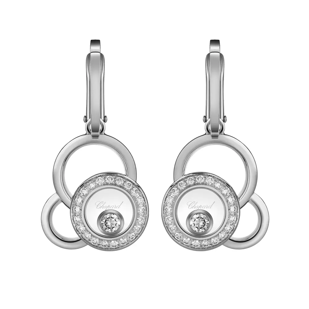 Chopard Happy Diamonds 839769-1002 are statement drop earrings that blend the collection’s playful spirit with timeless elegance. Crafted in 18kt white gold (750/1000) with a polished finish, their refined lines remain perfectly feminine and sleek. Secure, comfortable wear is ensured by a lever-back (French) fastening, which matches the earrings’ elegant design and underscores their luxurious character.