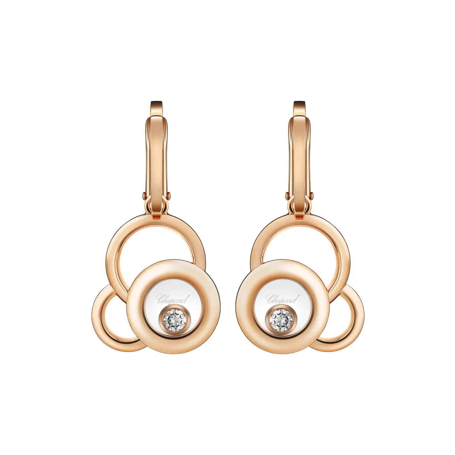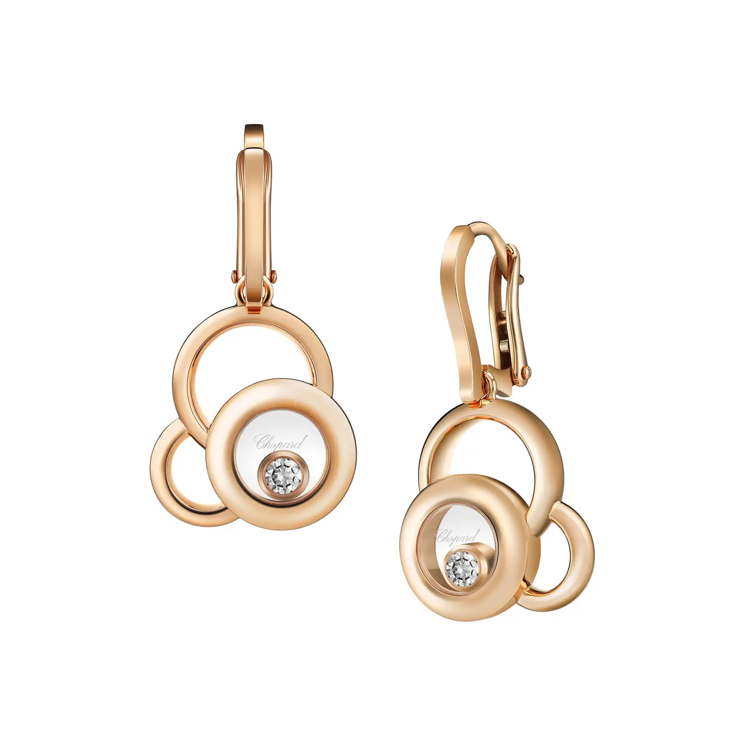 With the soft glow of rose gold and the iconic Chopard design, these earrings radiate sophisticated charm. Perfect for women who appreciate luxurious craftsmanship and playful elegance in a timeless piece of jewelry.