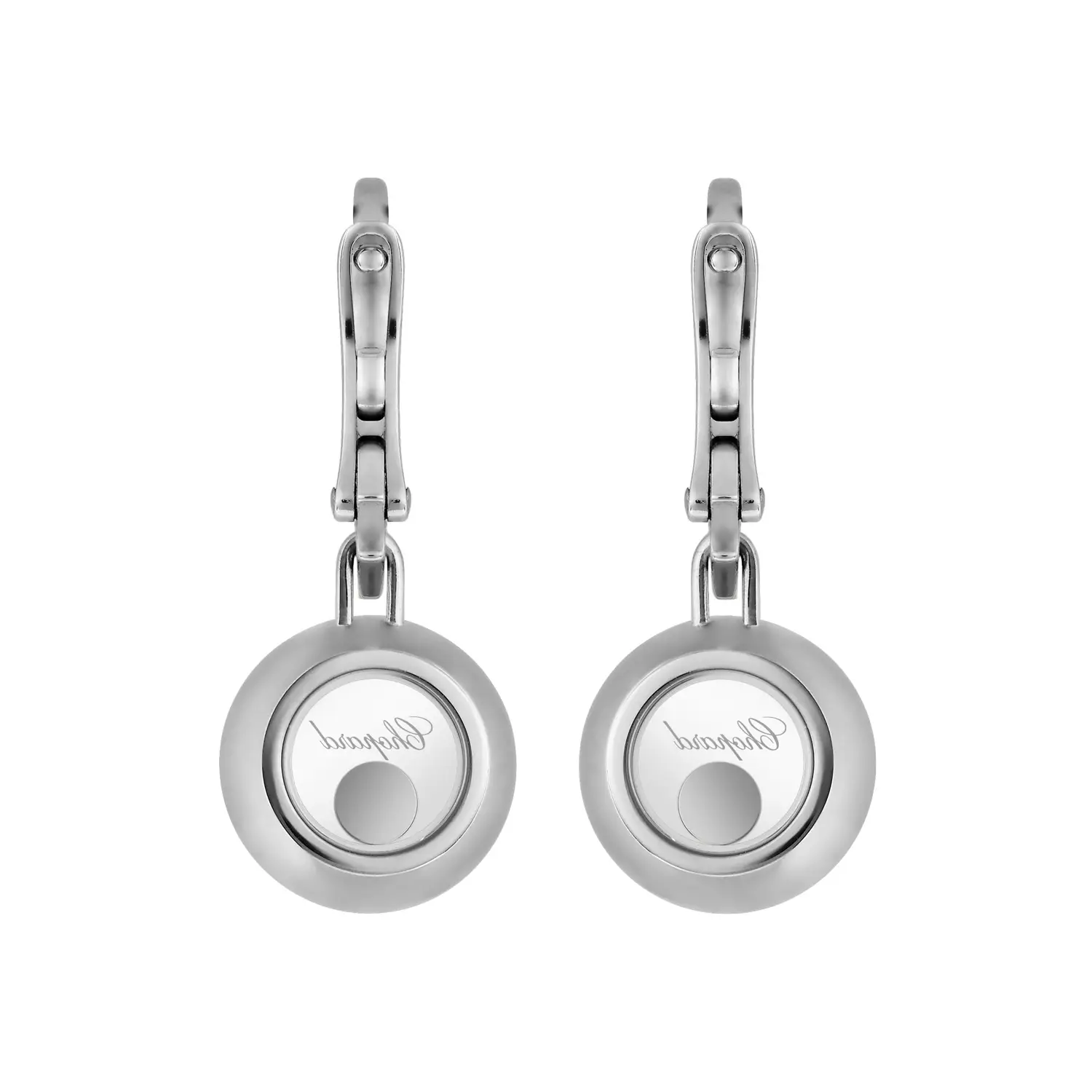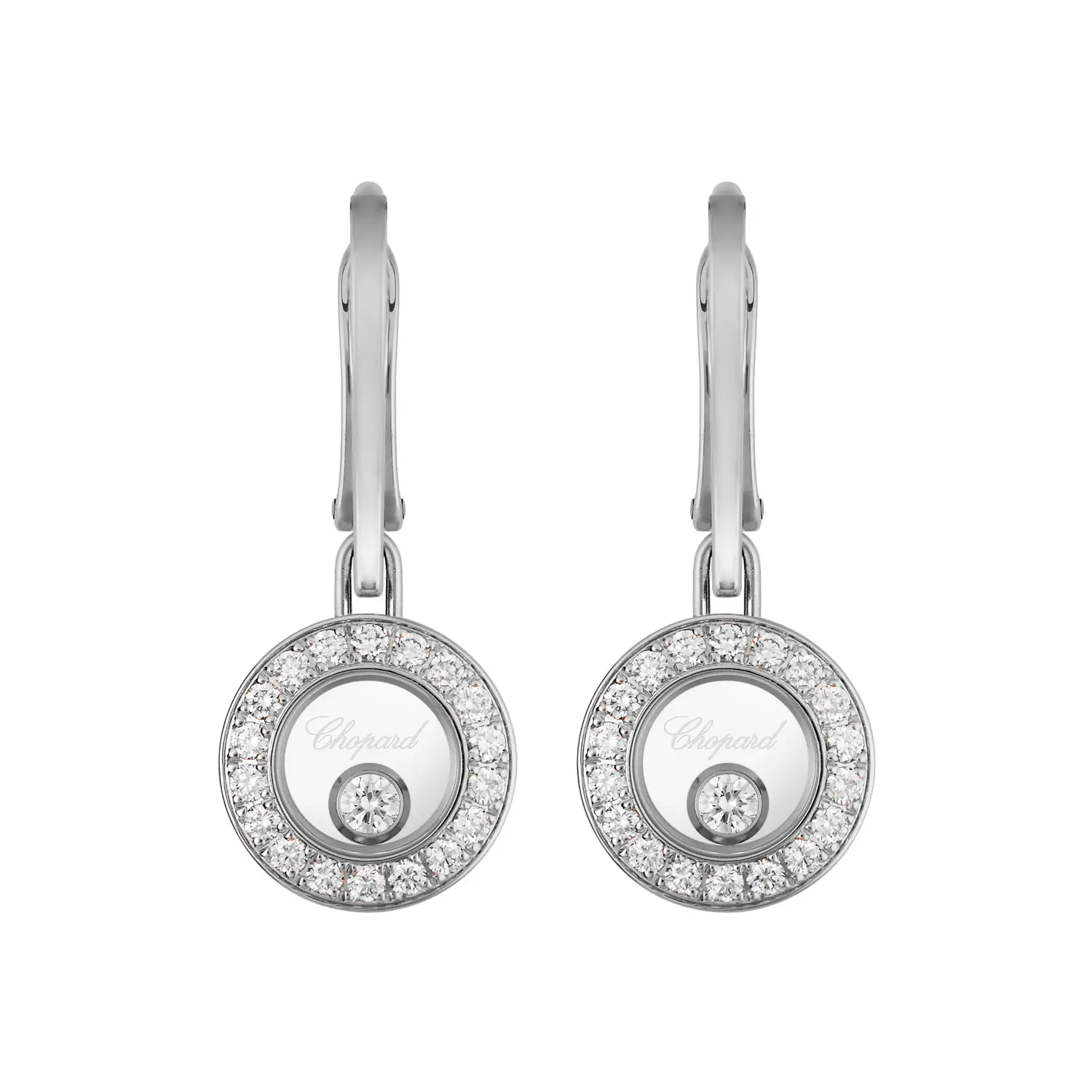 The Chopard Happy Diamonds Icons 83A017-1401 earrings embody elegance, delicacy, and timeless sophistication. Crafted from 18k ethical white gold, they feature freely moving diamonds encased between two sapphire crystals — a hallmark of the Happy Diamonds collection that brings each piece to life with radiant sparkle.