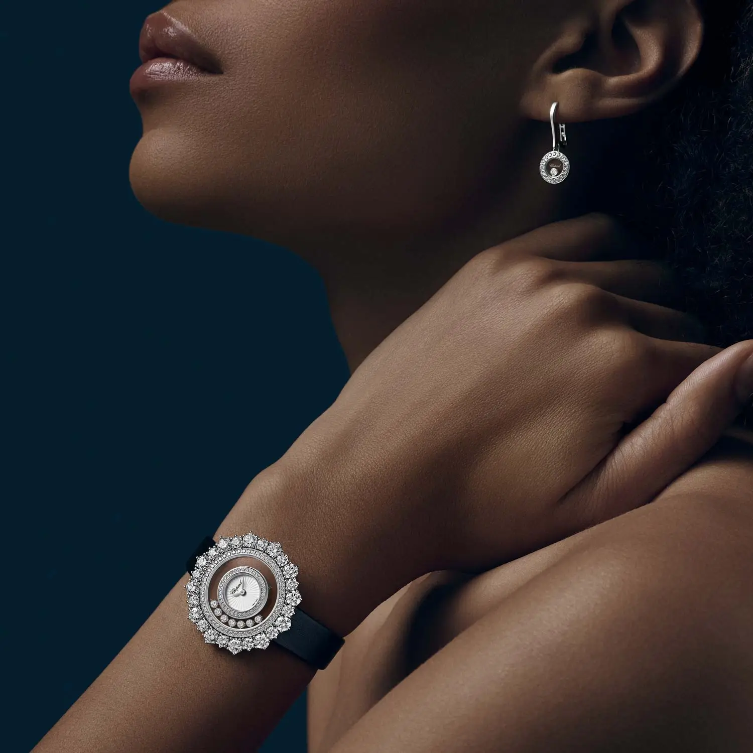 The Happy Diamonds collection is one of Chopard’s most famous and original creations. Since its launch in 1976, it has captivated the world with free-moving diamonds set between two sapphire crystals, dancing with every movement. This groundbreaking design has become a symbol of freedom, joy, and boundless creativity.