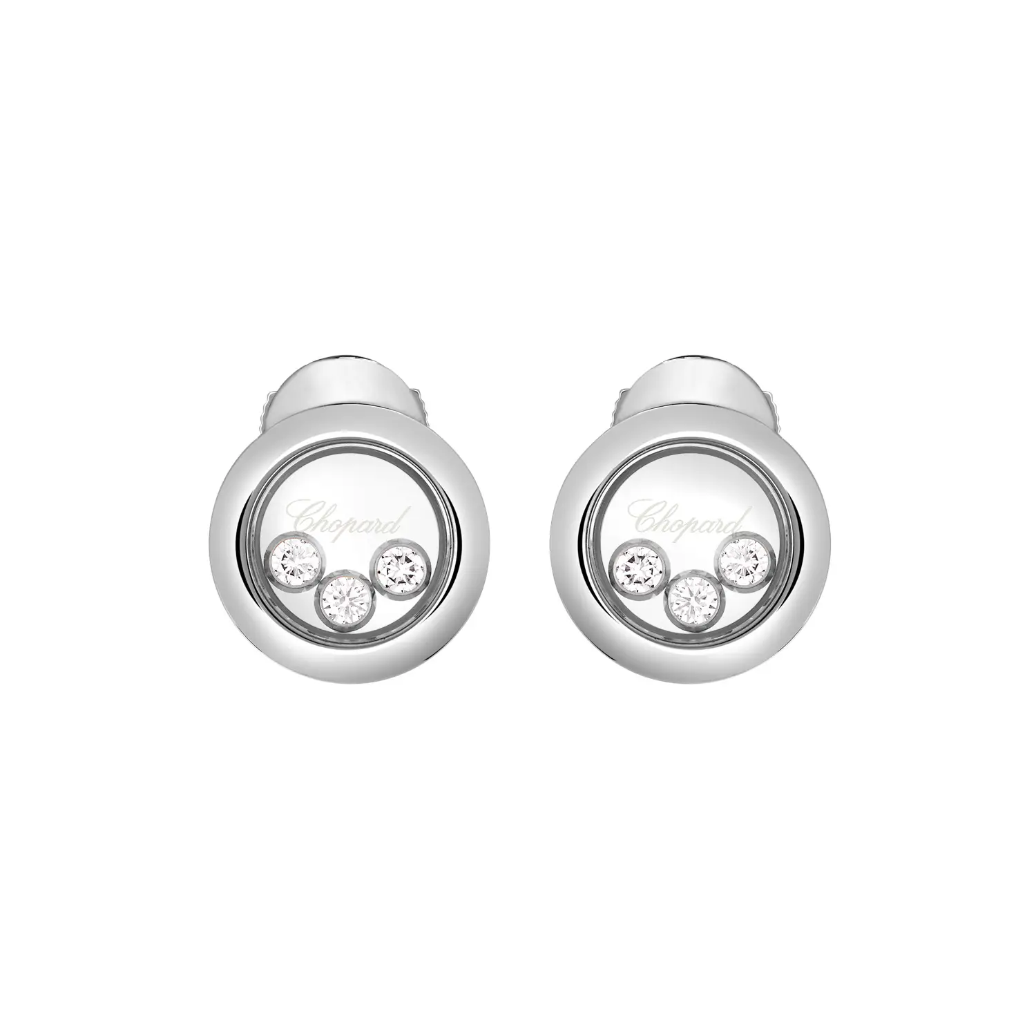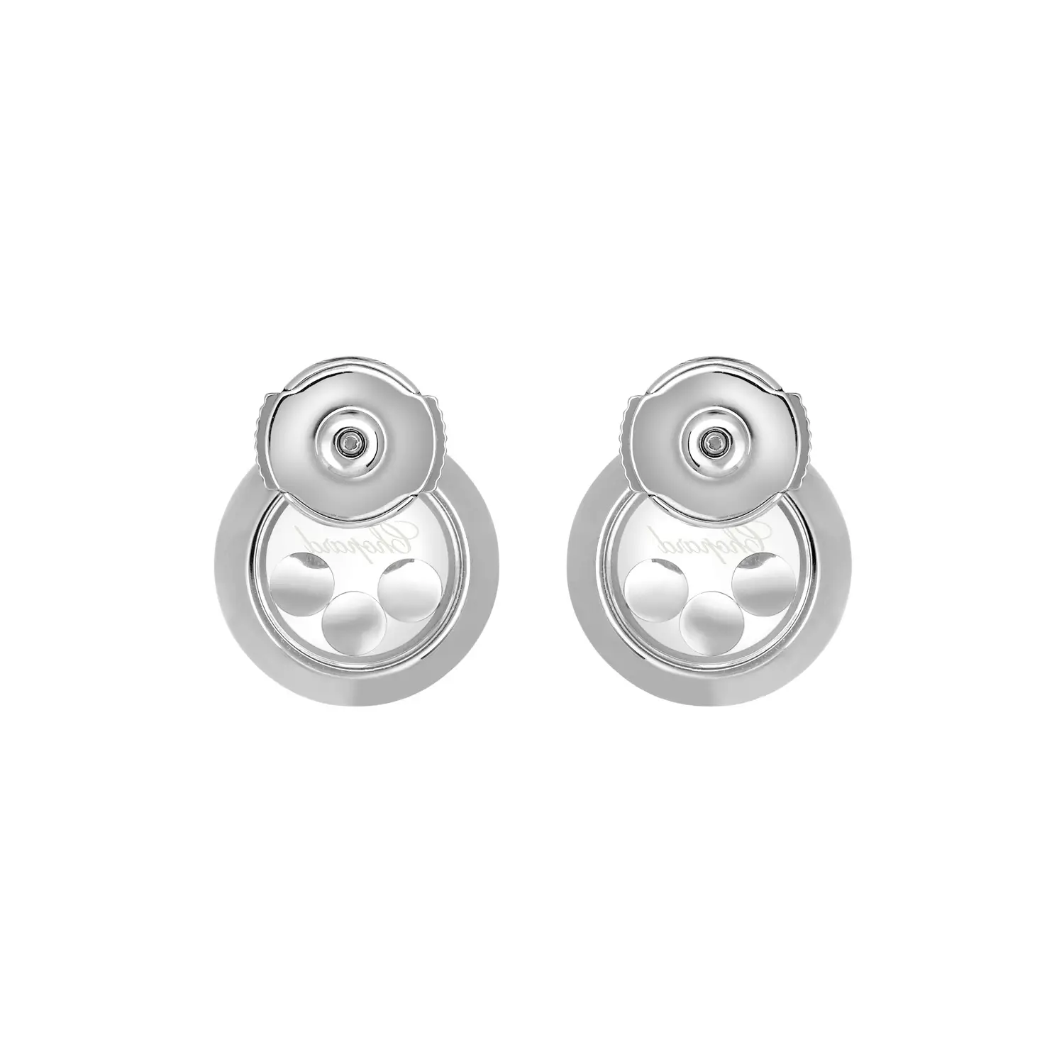 The Chopard Happy Diamonds Icons 83A018-1001 earrings perfectly capture the playful elegance and lightness that define this iconic collection. Crafted from 18k ethical white gold, they feature freely moving brilliant-cut diamonds with a total weight of approximately 0.30 ct, gracefully dancing between two sapphire crystals — a symbol of joy and freedom.