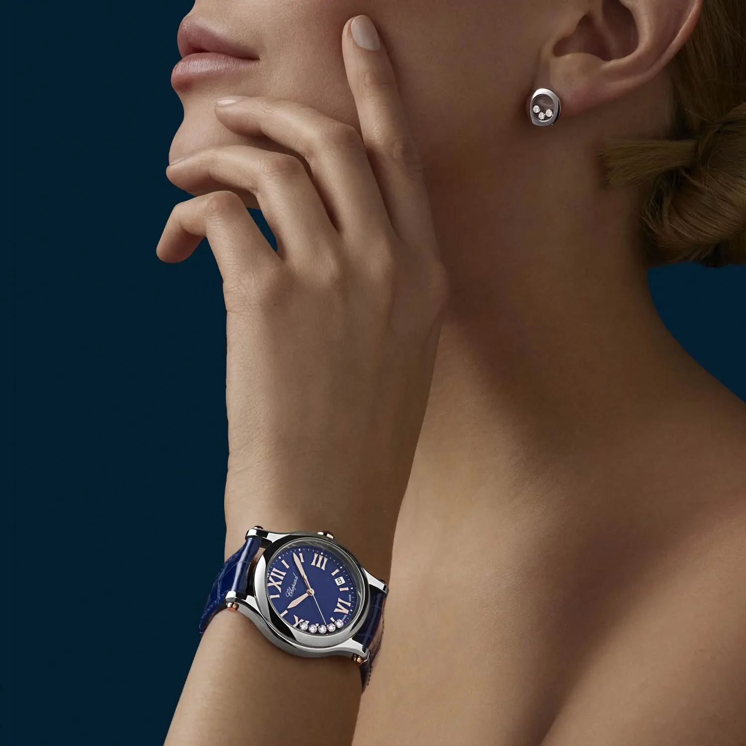The Happy Diamonds collection is one of Chopard’s most famous and original creations. Since its launch in 1976, it has captivated the world with free-moving diamonds set between two sapphire crystals, dancing with every movement. This groundbreaking design has become a symbol of freedom, joy, and boundless creativity.
