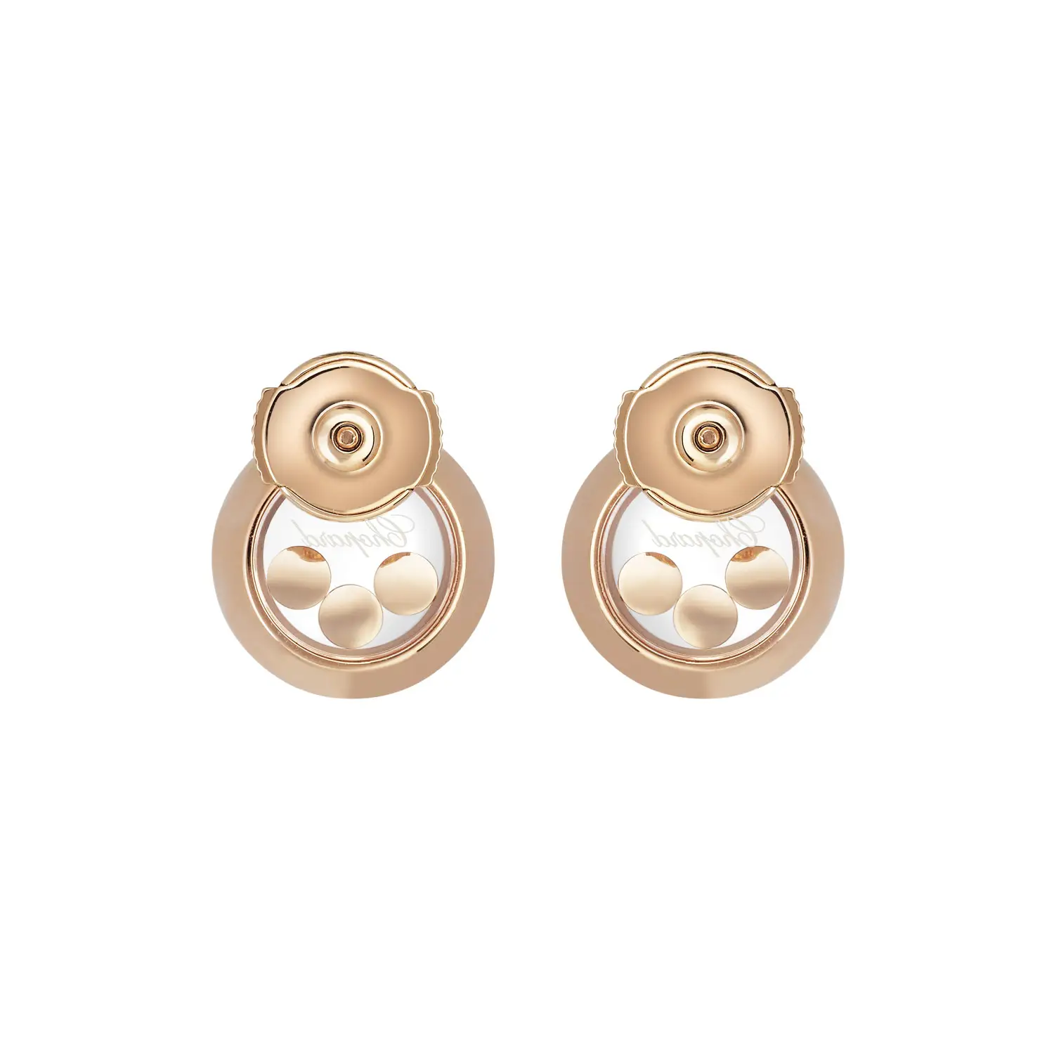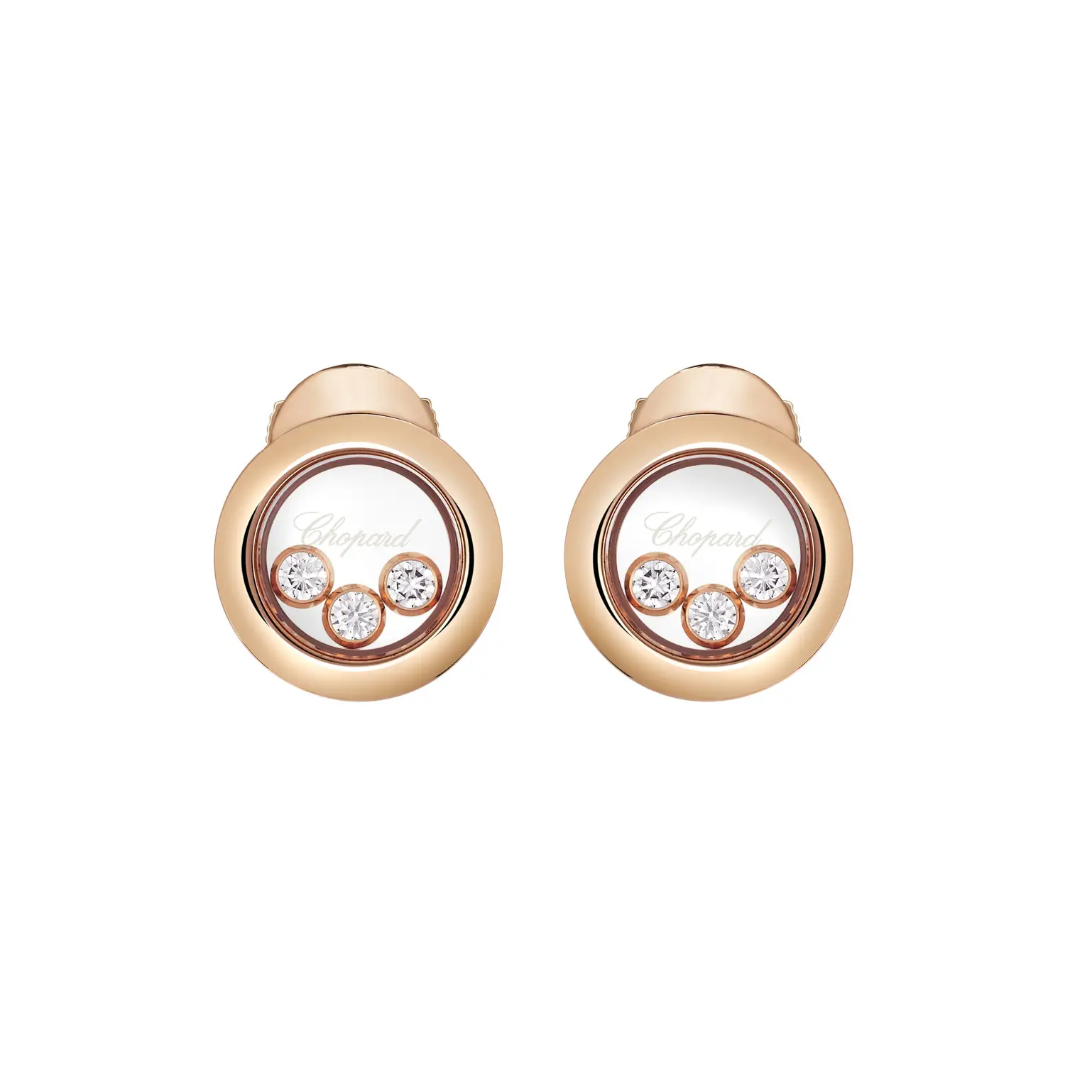 The Chopard Happy Diamonds Icons 83A018-5001 earrings radiate joy, light, and feminine elegance — hallmarks of this iconic collection. Crafted from 18k ethical rose gold, they feature freely moving brilliant-cut diamonds with a total weight of approximately 0.30 ct, gracefully dancing between two sapphire crystals — a symbol of freedom, movement, and playfulness characteristic of Chopard.