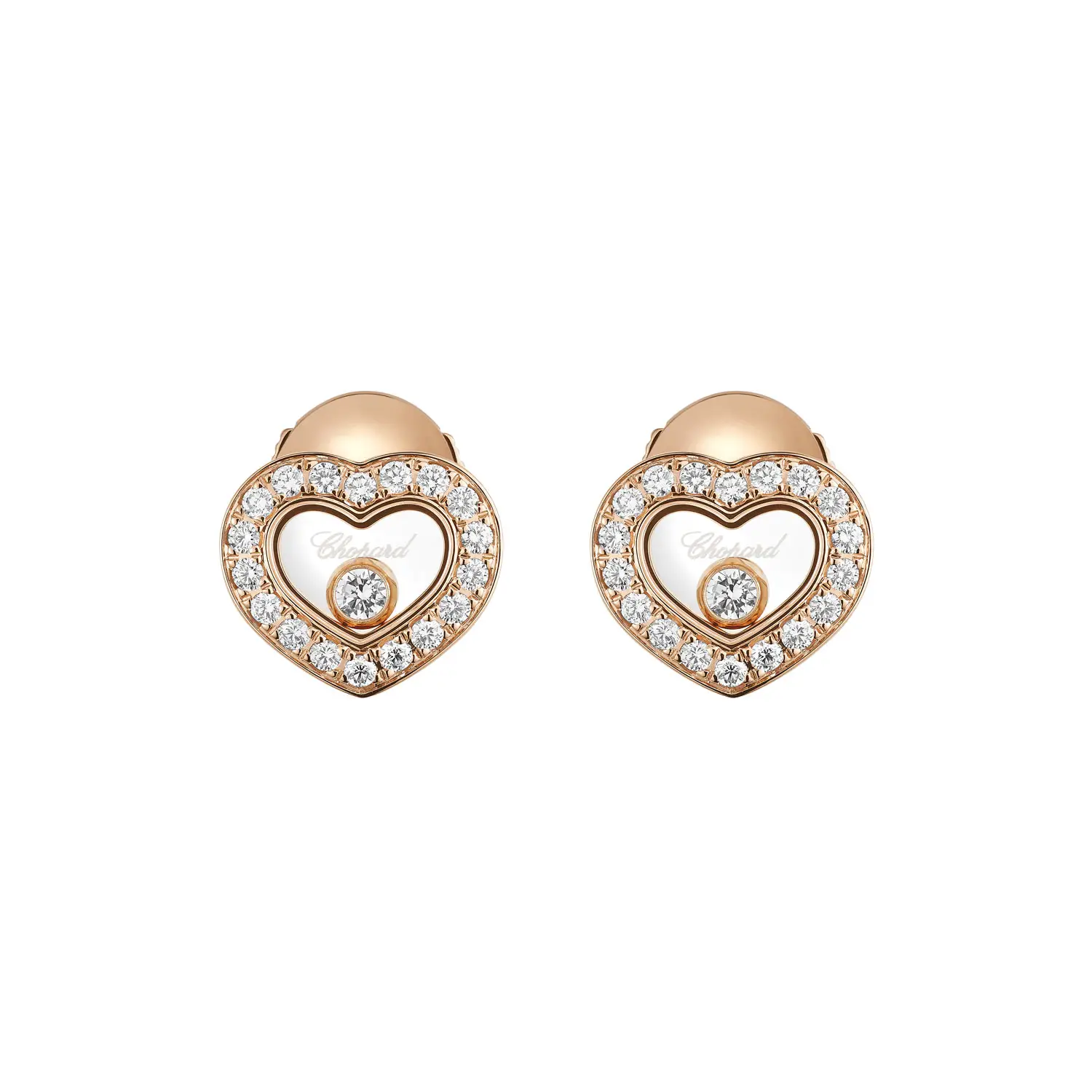The Chopard Happy Diamonds Icons 83A054-5201 earrings embody a perfect balance of playfulness and timeless elegance. Crafted from 18k ethical rose gold, they feature brilliant-cut diamonds totaling approximately 0.38 ct, freely moving between two sapphire crystals — the signature “dancing diamonds” motif symbolizing joy, freedom, and light.
