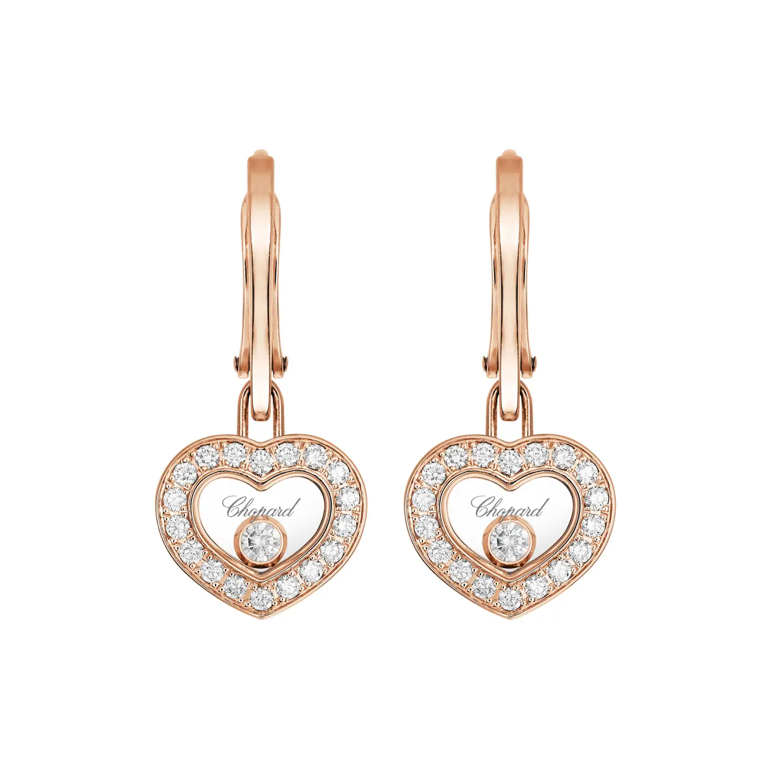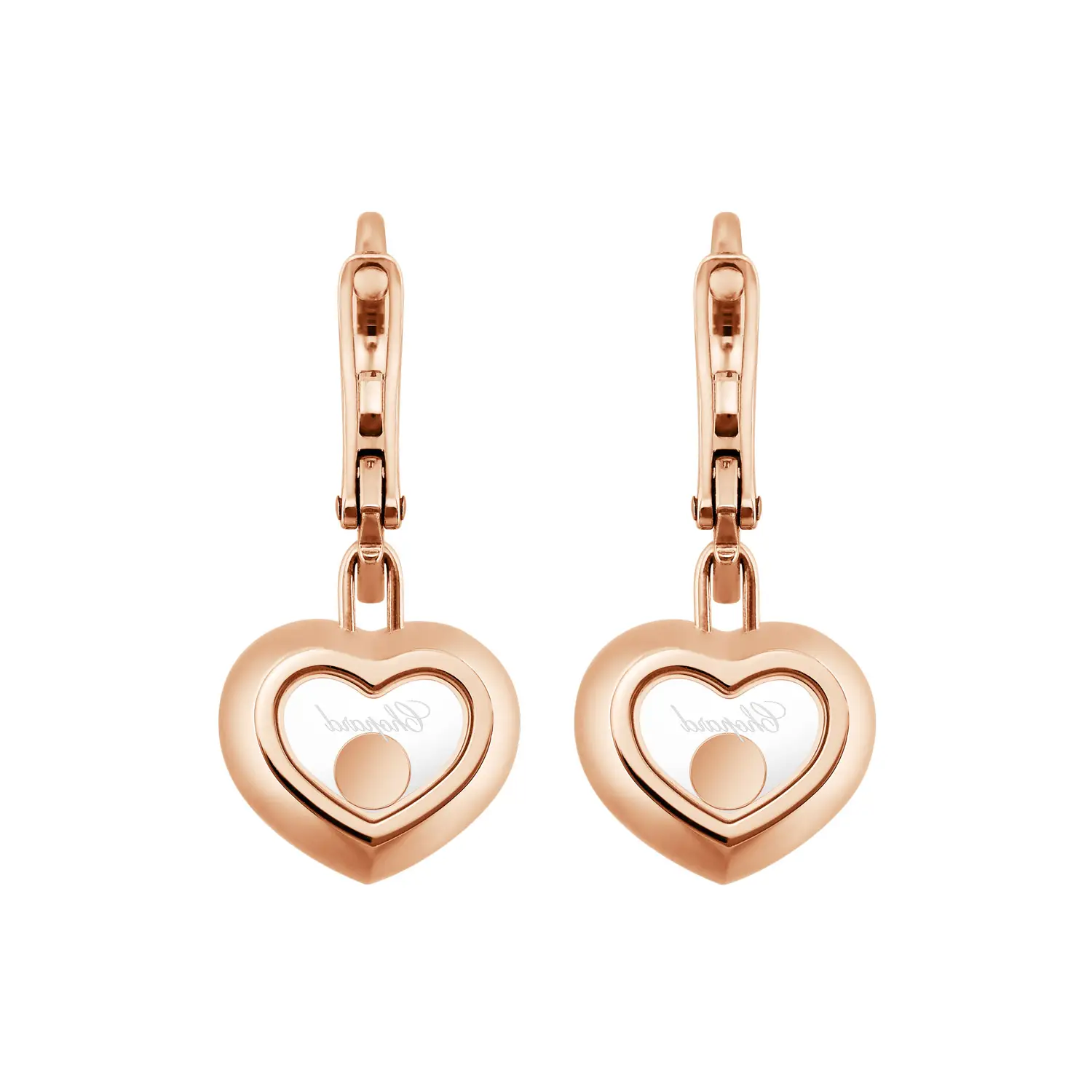 The Chopard Happy Diamonds Icons 83A054-5401 earrings capture the radiant beauty and joyful movement that define the Happy Diamonds collection. Crafted from ethical 18-carat rose gold, they feature freely moving diamonds enclosed between two sapphire crystals – a signature design that brings every motion to life. The total diamond weight is approximately 0.38 ct, offering subtle brilliance with timeless charm.