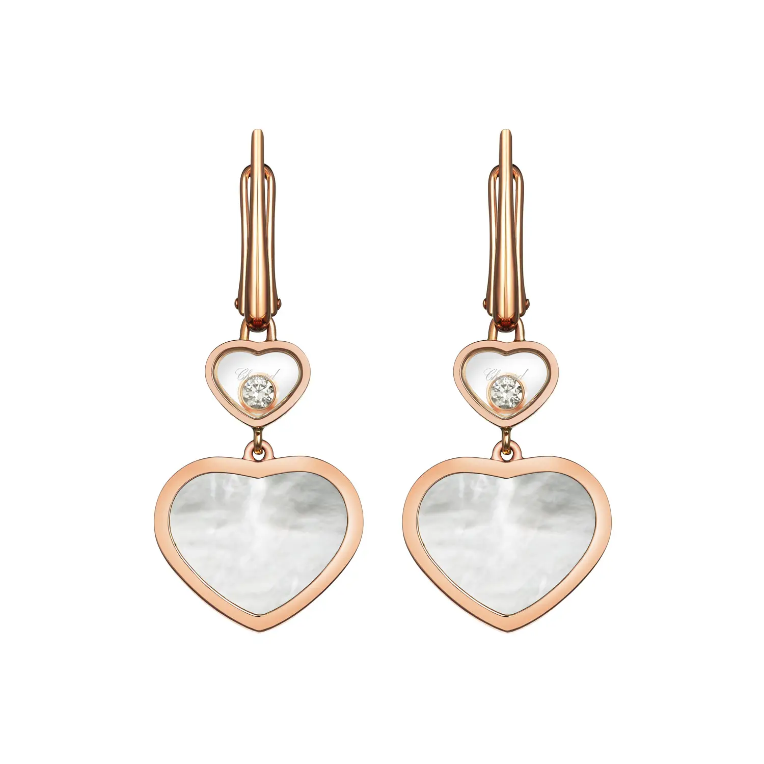 Chopard Happy Hearts 837482-5310 are drop earrings that blend the playful heart motif with the poise of high jewelry. Crafted in 18kt rose gold (750/1000) with a polished finish, their bold style with a large stone draws the eye with every movement. For secure, comfortable wear, they feature a lever-back (French) fastening, which underscores the earrings’ elegant character and sits beautifully on the ear.