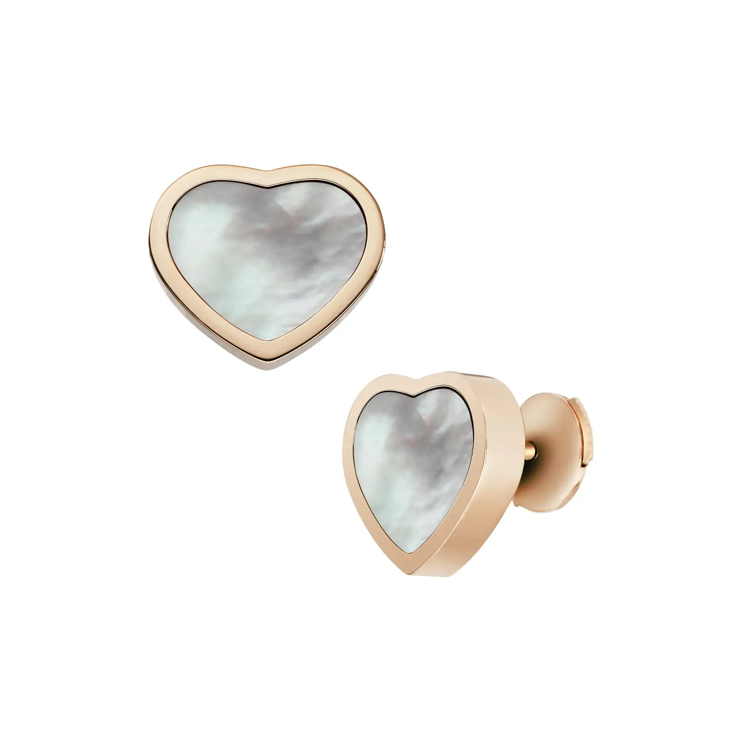 The Chopard Happy Hearts 839482-5301 earrings combine romantic design with subtle luxury. Crafted from 18k rose gold, they are adorned with two white mother-of-pearl hearts, radiating a gentle iridescence that symbolizes purity and femininity — a signature motif of the Happy Hearts collection. Every detail reflects the joy and elegance inherent to Chopard.