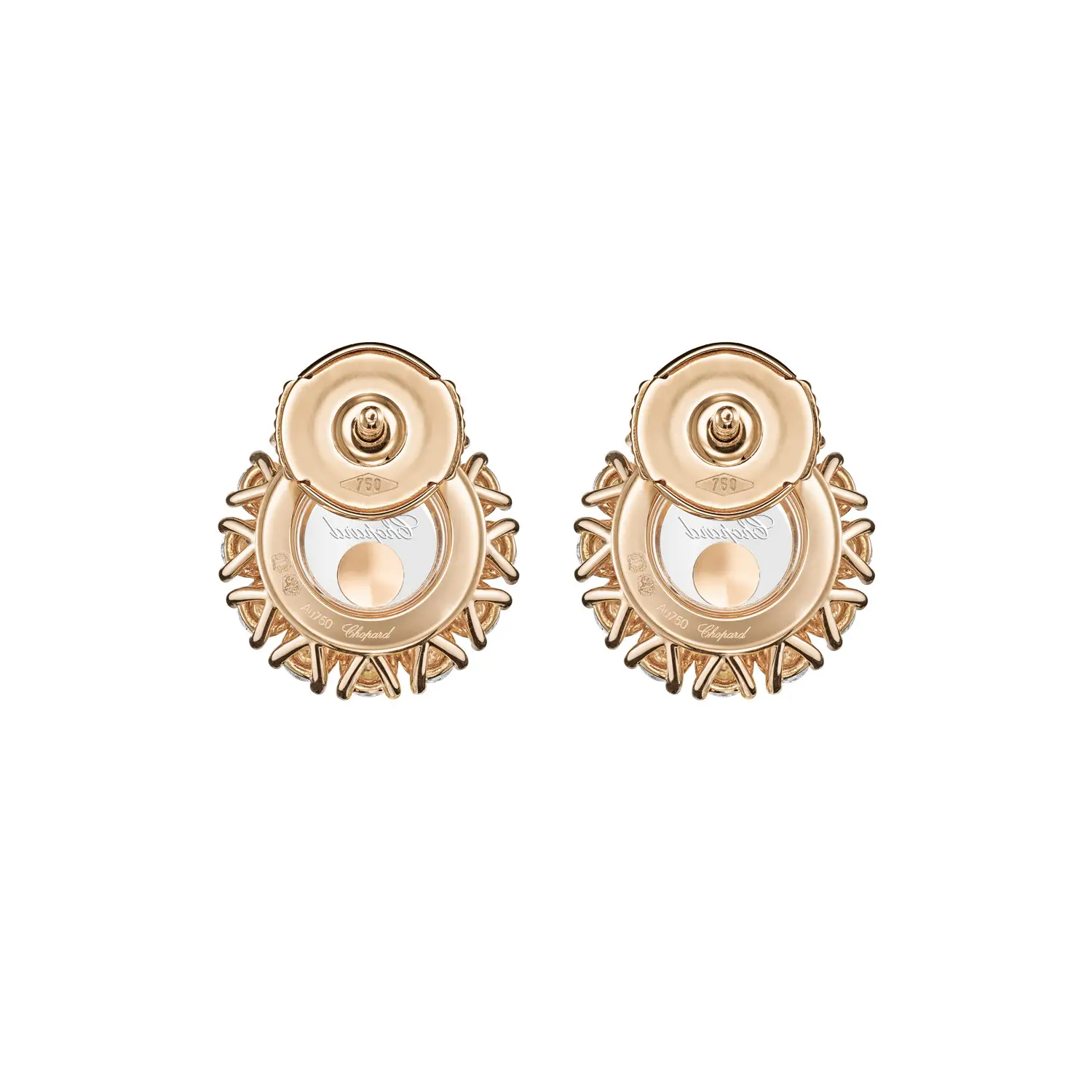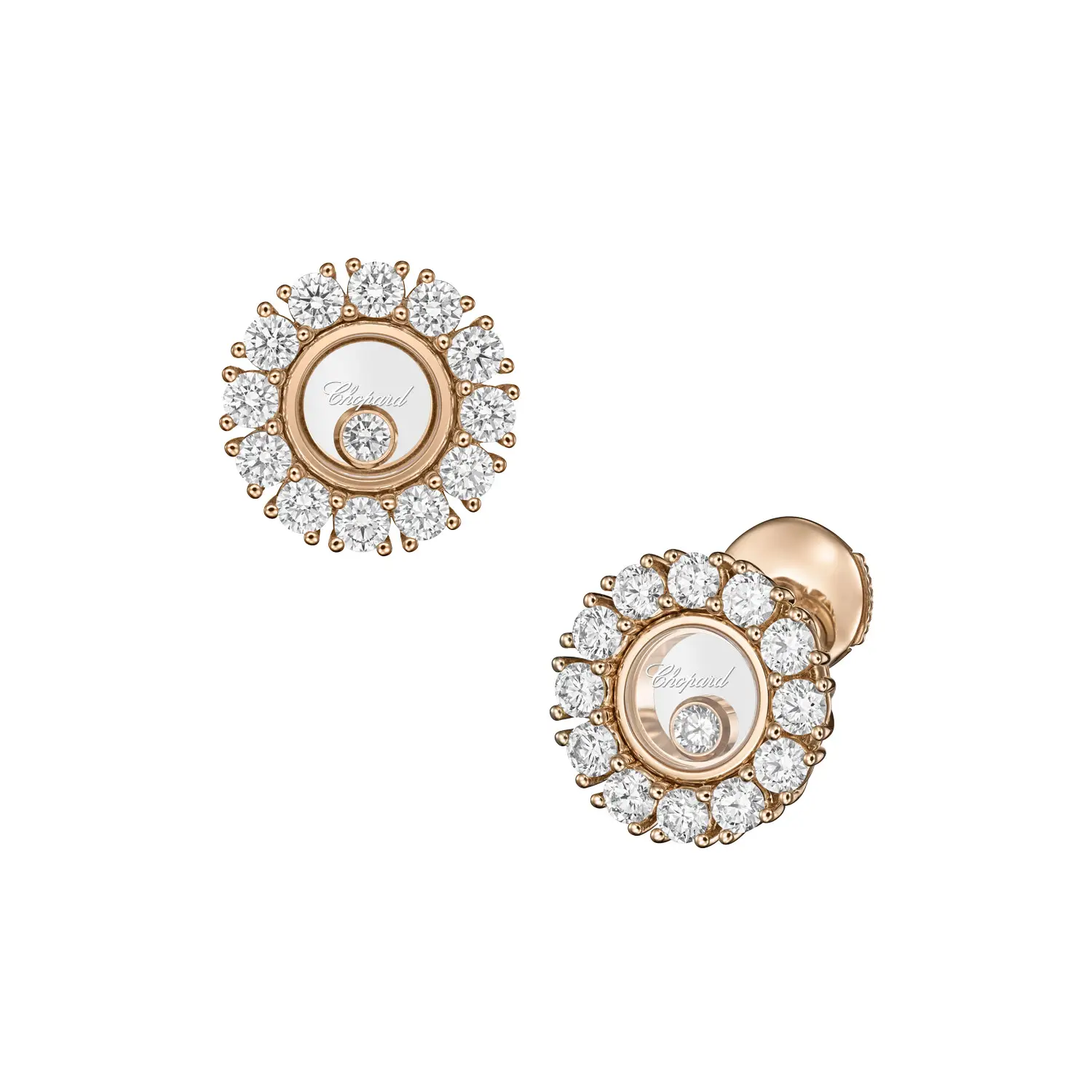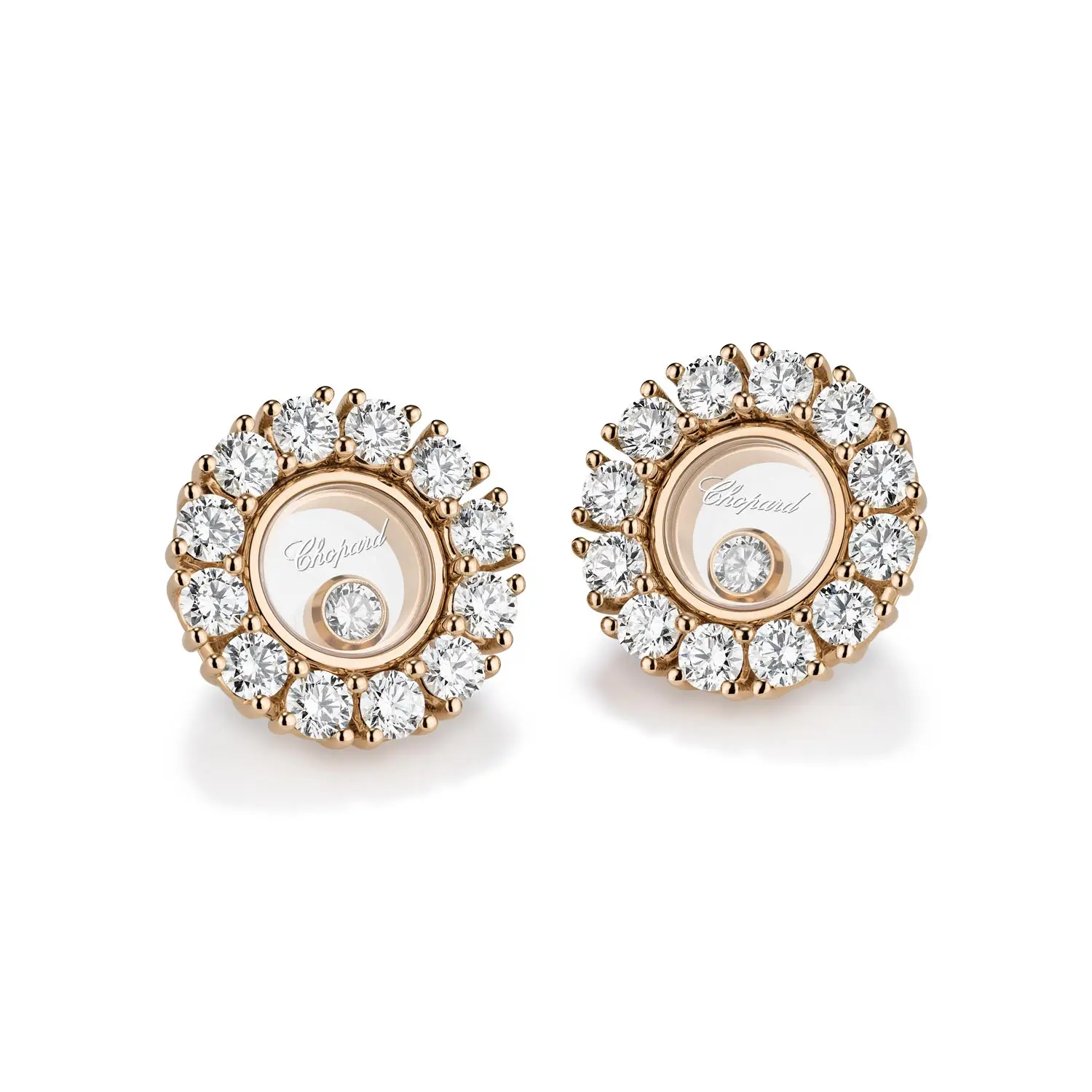 The Chopard Happy Diamonds 83A609-5001 earrings perfectly embody the elegance, motion, and light that define the Happy Diamonds collection. Crafted from ethical 18-carat rose gold, they feature freely moving diamonds encased between two sapphire crystals, creating a dazzling play of light with every movement. The total diamond weight is approximately 1.20 ct.