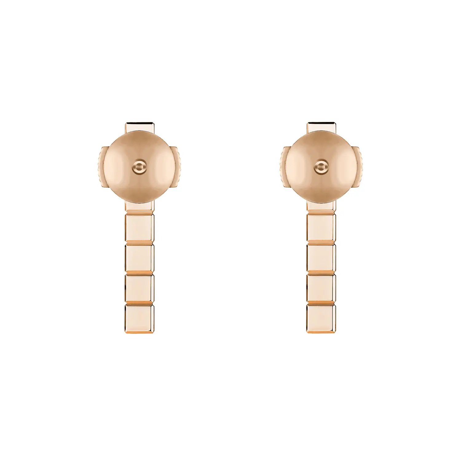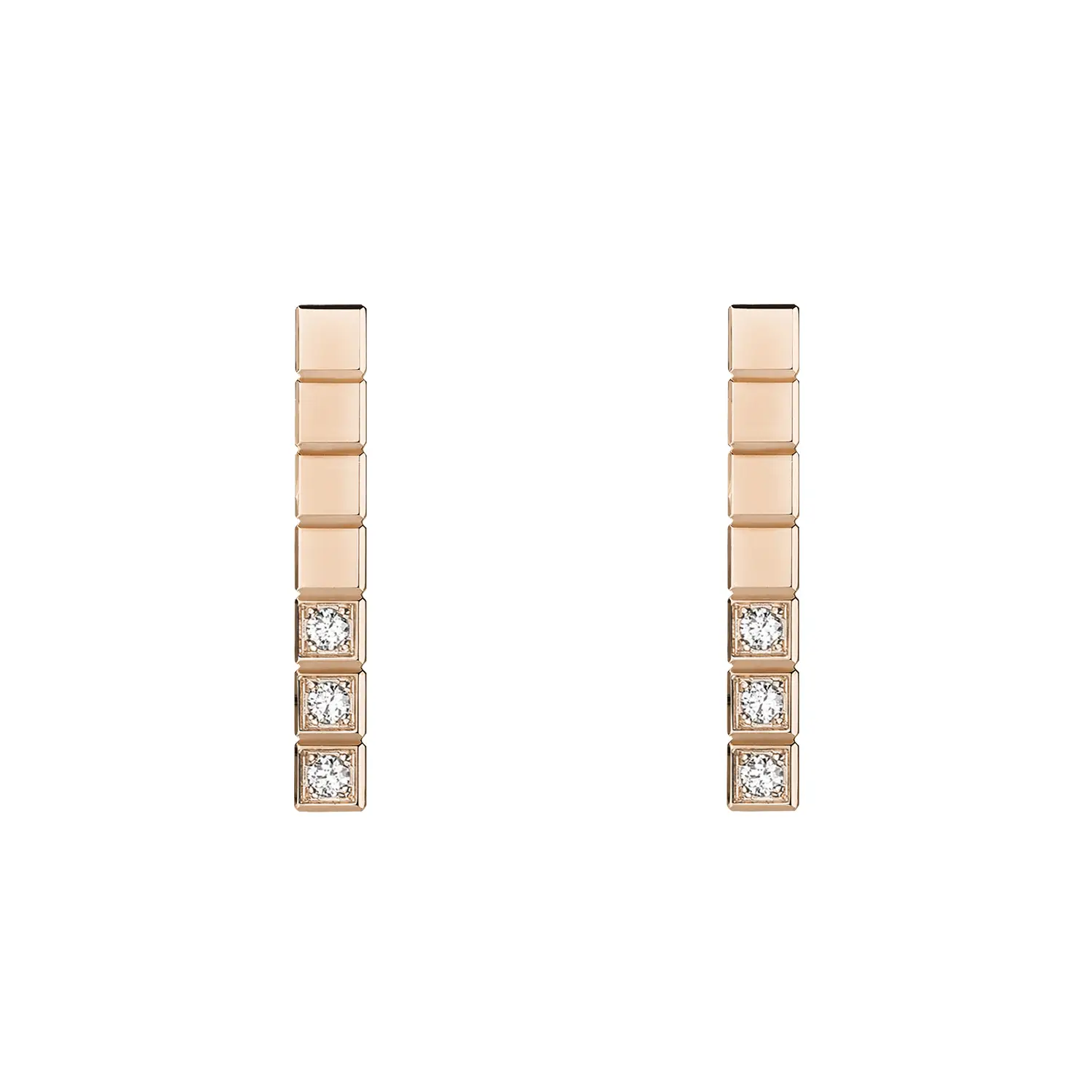 The Chopard Ice Cube 837702-5002 earrings embody the perfect balance of modern minimalism and refined luxury. Crafted from 18k ethical rose gold and set with six brilliant-cut diamonds totaling 0.06 ct, they reflect the collection’s signature cubic geometry inspired by ice blocks.