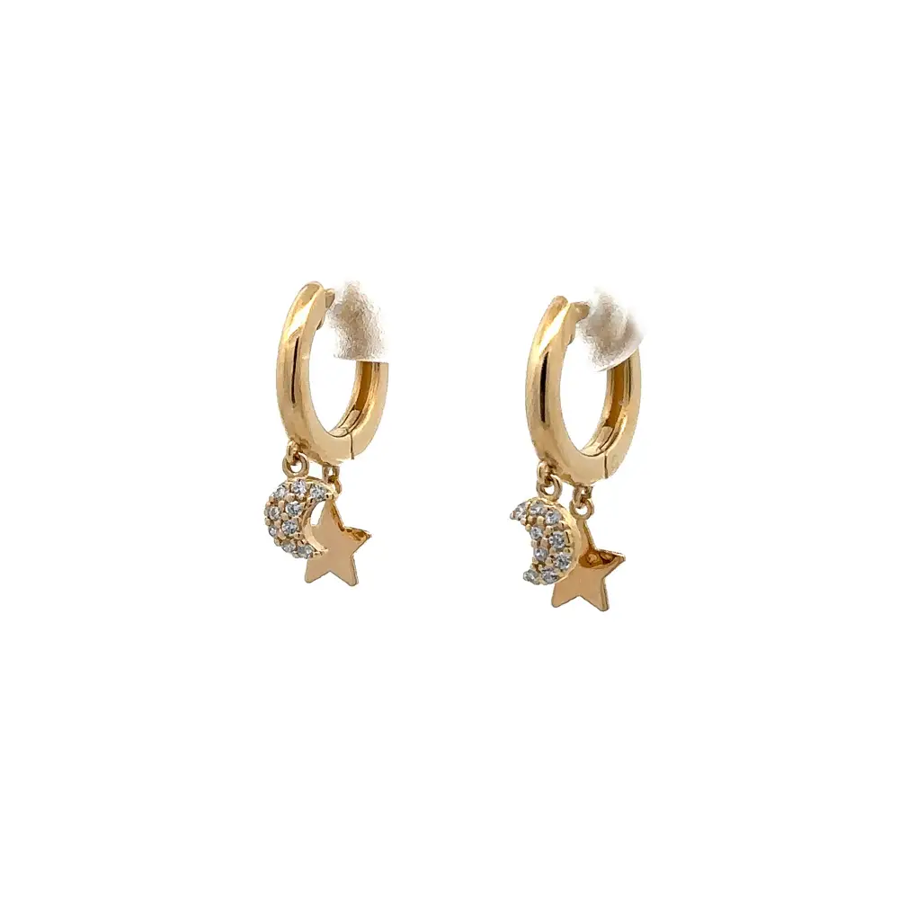 Gold Earrings Crescent and Star with Zircons