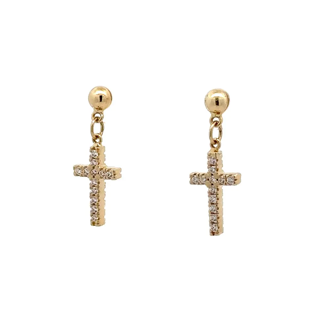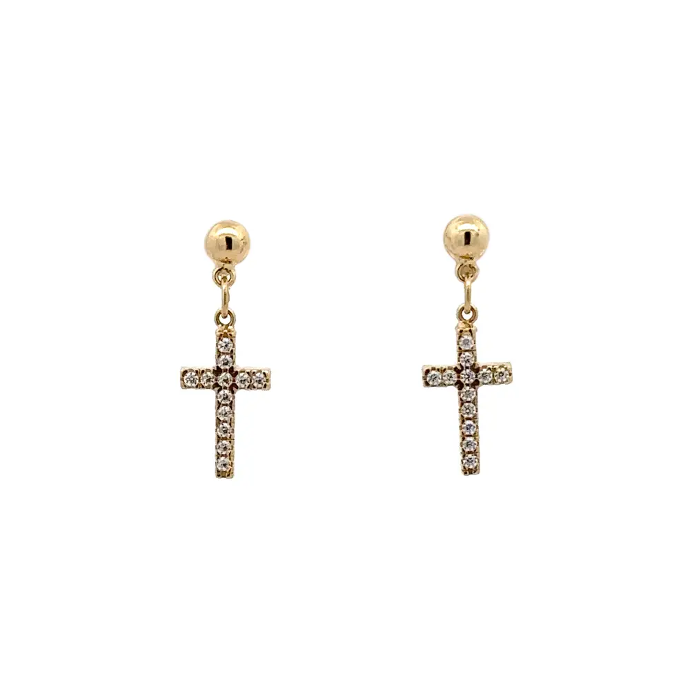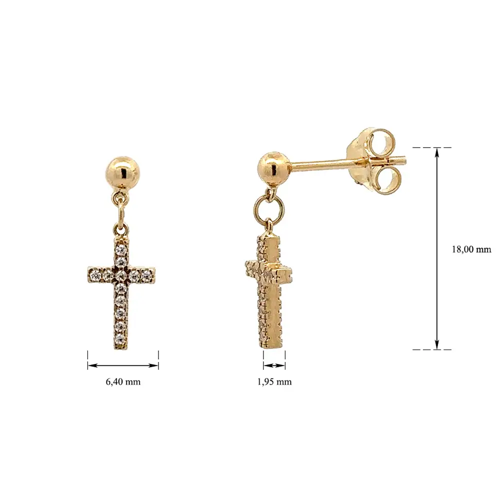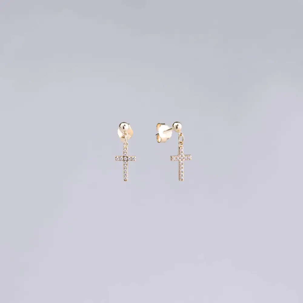 Gold Earrings Cross with Zircons