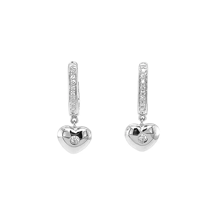 Gold Earrings in Heart Shape with Diamonds