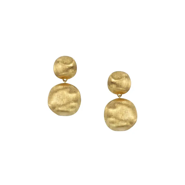 The Marco Bicego Africa OB922 Y earrings blend strong presence with a minimalist design typical of the Africa collection. Crafted from 18 kt yellow gold (750/1000), they feature a polished & matte finish that adds depth and interesting play of light. They fasten with stud (puzeta) closures for a secure and comfortable hold.