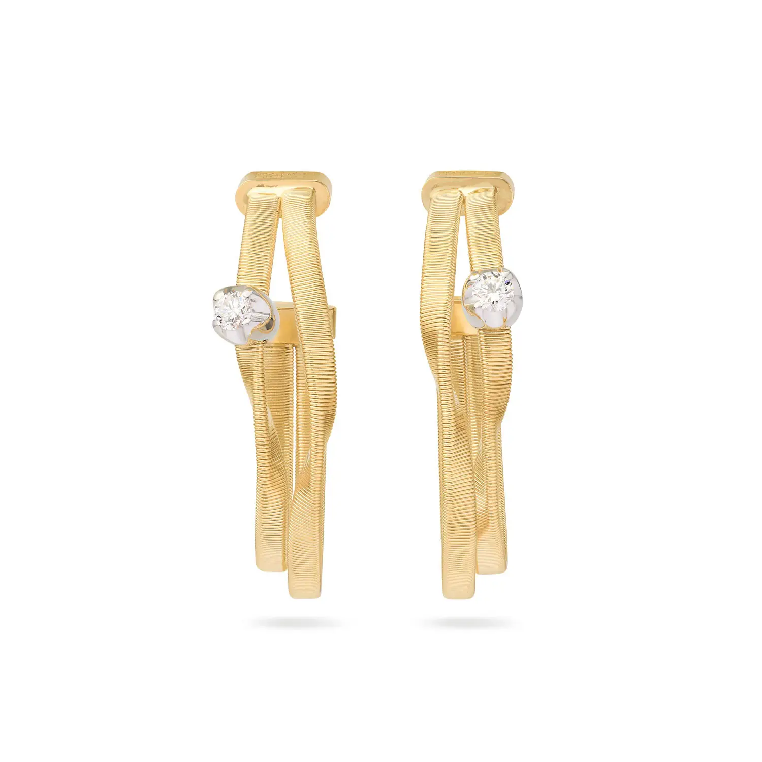 The design features gently twisted spiral elements combining yellow and white gold, creating a modern yet timeless silhouette. A refined accent is provided by two natural brilliant-cut diamonds with a total weight of 0.16 ct, which add a subtle sparkle and elegantly highlight the dynamic design of the Marrakech collection.