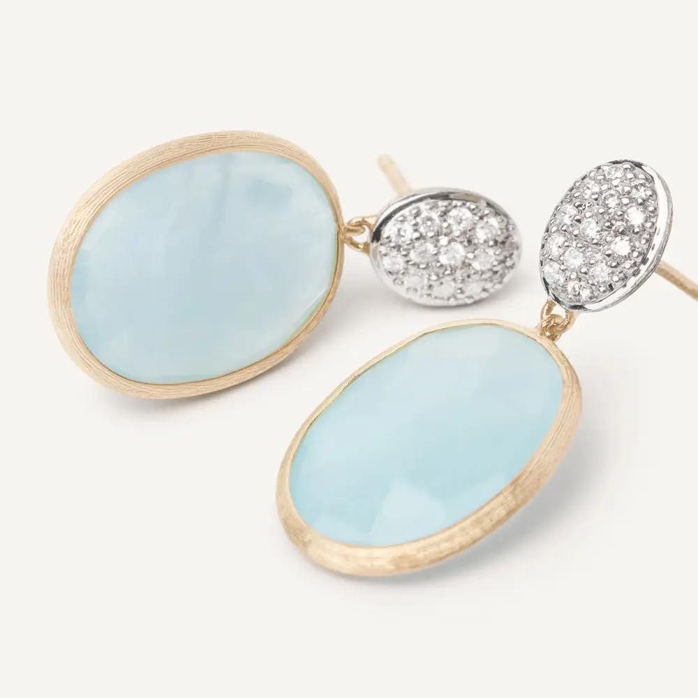 These sophisticated earrings from the Marco Bicego Siviglia collection are crafted from 18kt mixed gold (750/1000), combining polished and matte finishes to create a refined and harmonious contrast. The organic, smooth shapes typical of Siviglia give the earrings a timeless elegance, while the stud fastening ensures comfort and security.