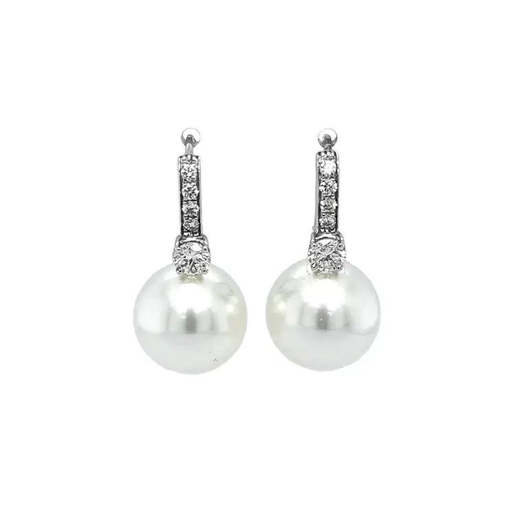 Gold Earrings Natural Pearls and Diamonds