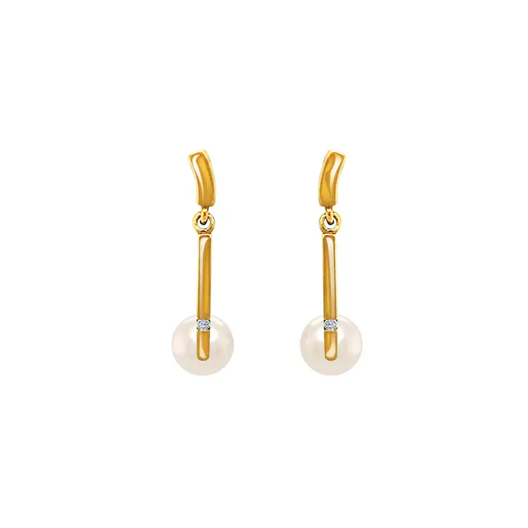 Gold Earrings Natural Pearls and Diamonds