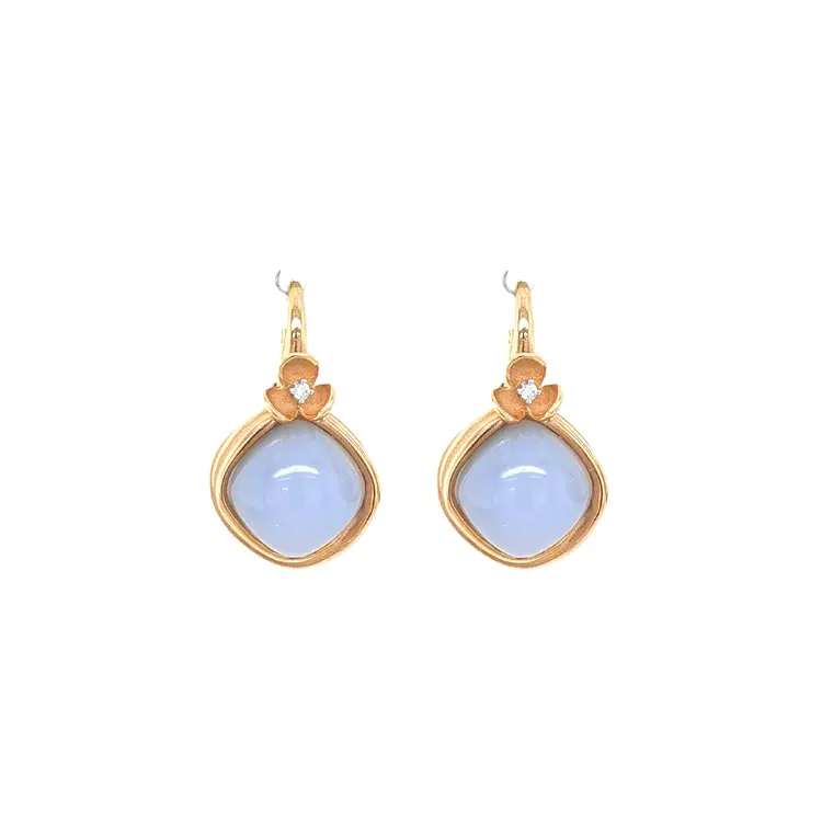 Gold Earrings with Chalcedony and Diamonds