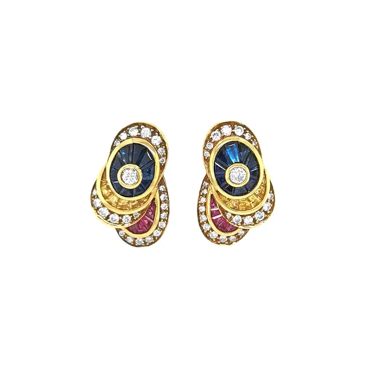 Gold Earrings with Rubies, Blue, Yellow Sapphires and Diamonds