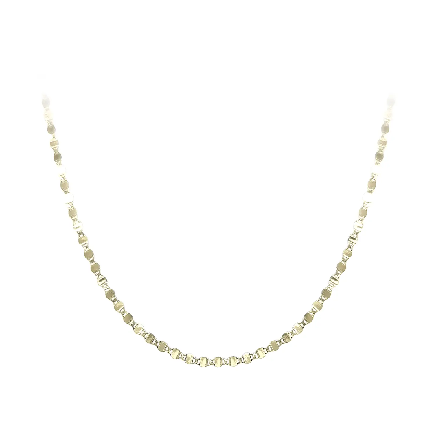 This gold faceted chain captivates with its delicate yet striking structure, featuring precisely cut links that reflect light beautifully. Its elegant character enhances both everyday style and special-occasion outfits.