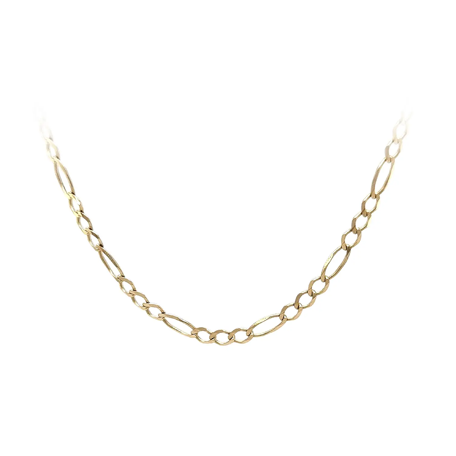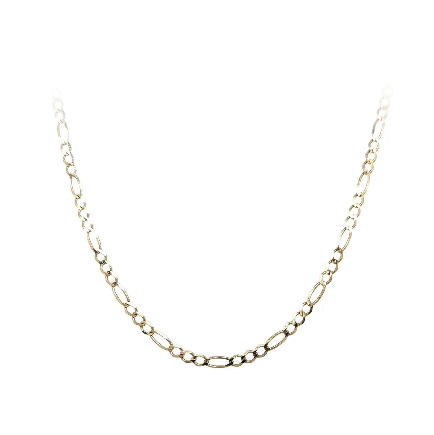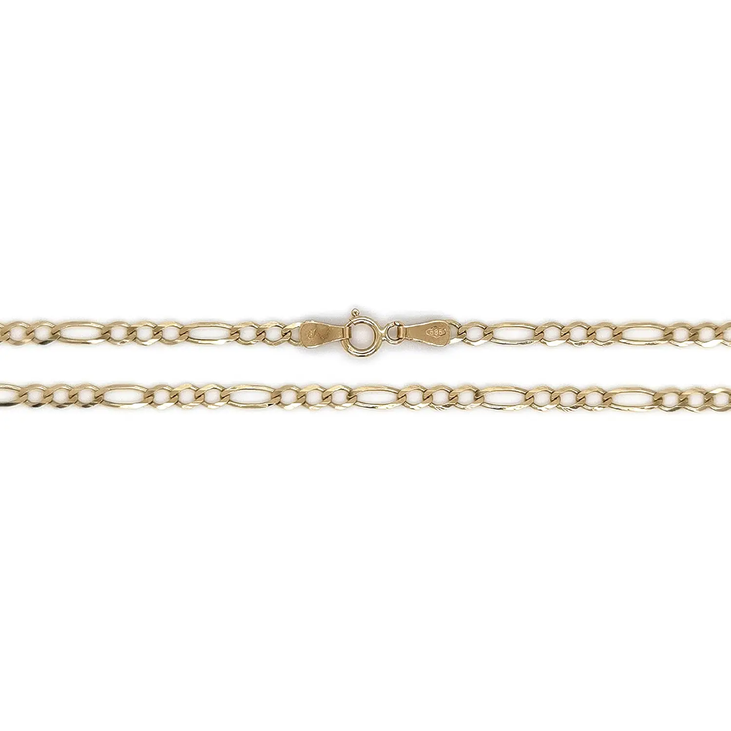 This elegant Gold Figaro chain in 50 cm length and 2.80 mm width offers a timeless design built on the distinctive rhythm of alternating long and short links. Light yet visually refined, it is a perfect accessory for both everyday wear and special occasions.