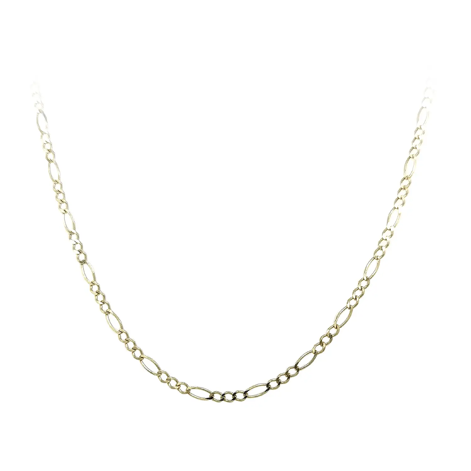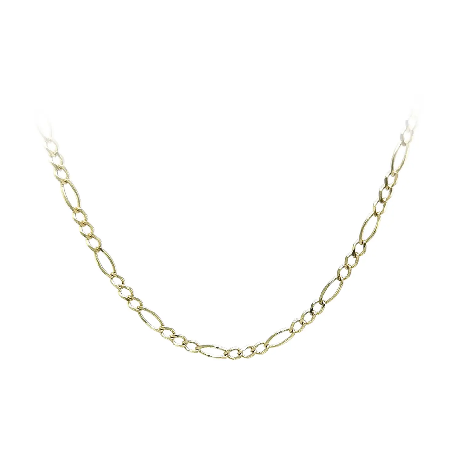 Crafted from high-quality 14k yellow gold, it offers durability, a radiant shine, and timeless style suitable for wearing on its own or with a pendant. The meticulous craftsmanship ensures long-lasting comfort and resilience, making this Figaro chain a perfect choice for women who appreciate elegant yet distinctive jewelry.