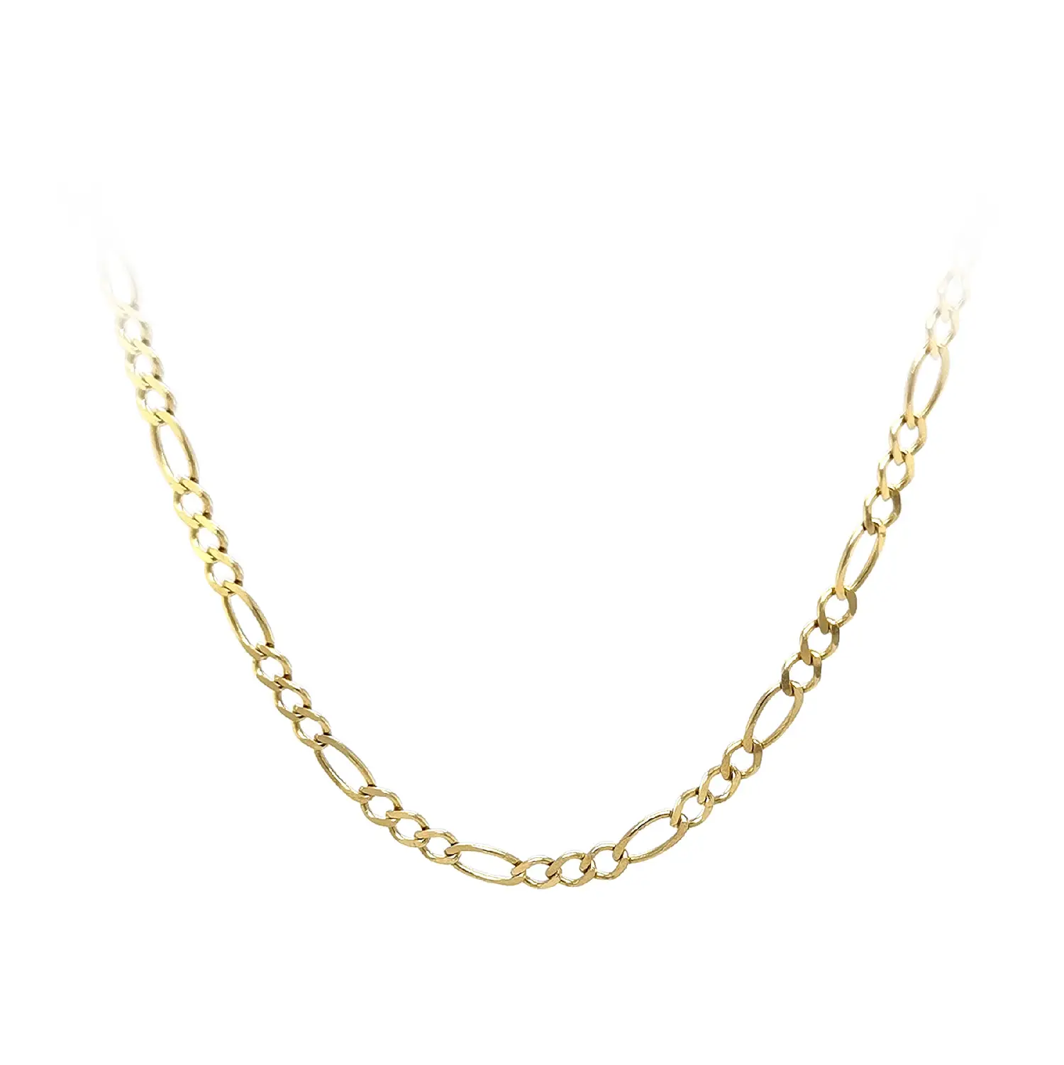 This gold Figaro chain, measuring 50 cm in length and 2.90 mm in width, offers a timeless and elegant design. The characteristic pattern of alternating long and short links creates a refined rhythm, giving the chain a sophisticated yet classic look. Crafted from high-quality gold, it is suitable for wearing on its own or paired with a pendant.