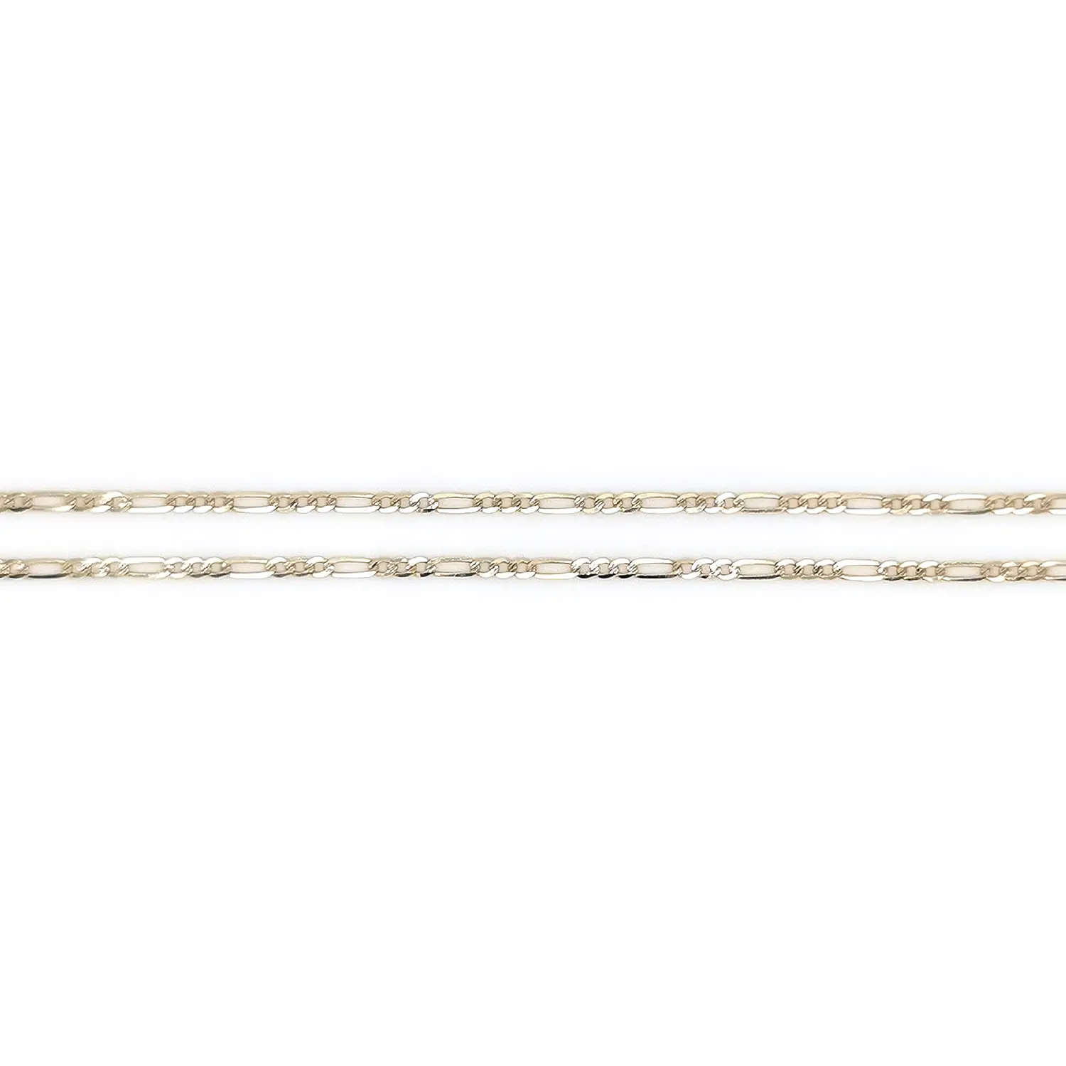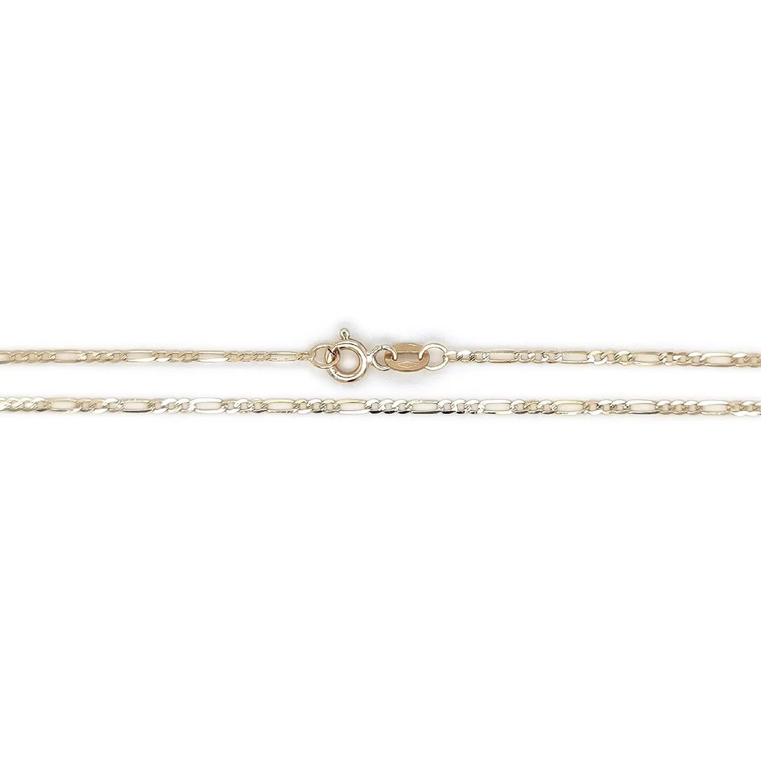 The Figaro gold chain is a timeless classic known for its distinctive pattern of alternating long and short links. Its elegant design and subtle shine make it suitable for wearing alone or paired with a pendant.