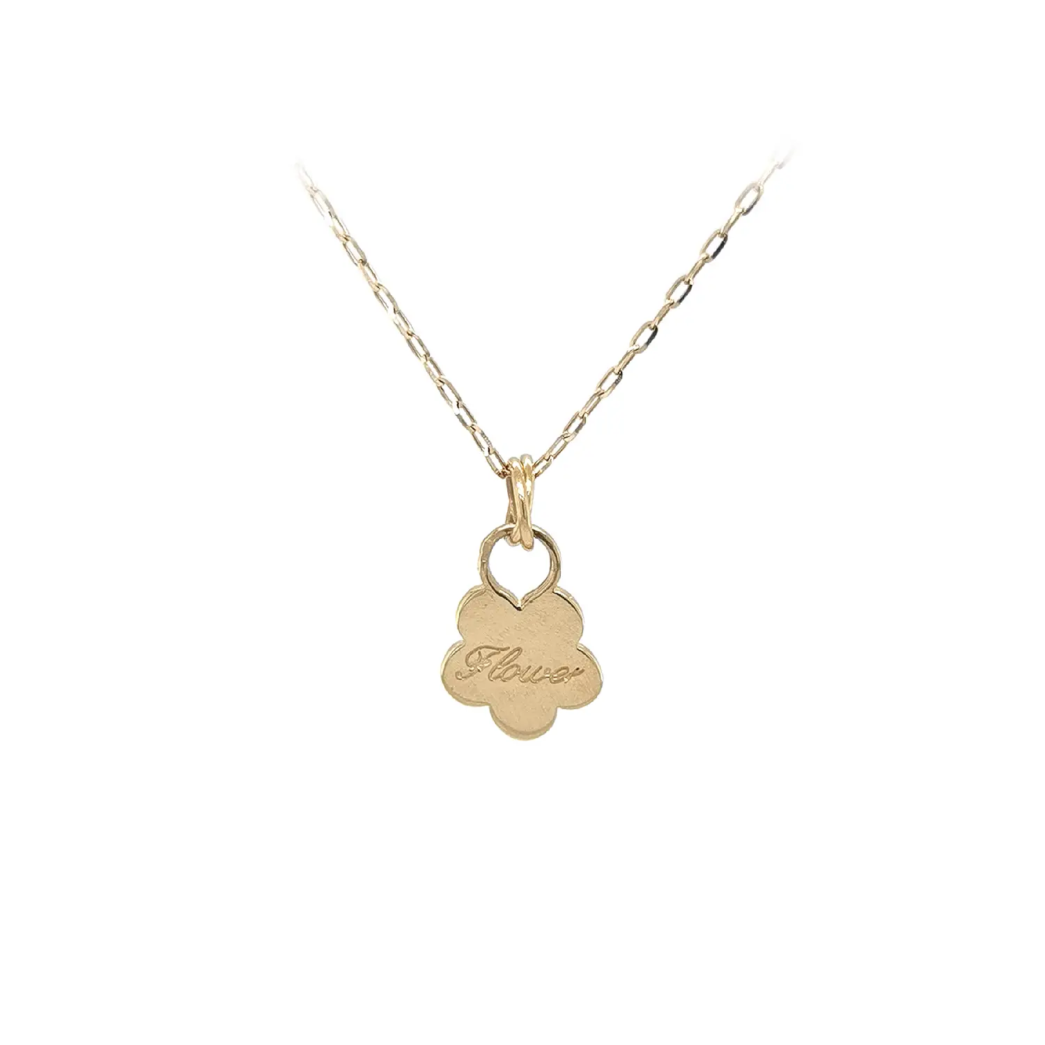 Gold Flower Pendant with “Flower” Engraving