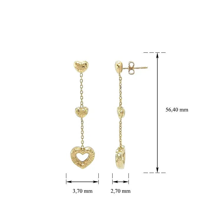 Gold Hanging Earrings Hearts