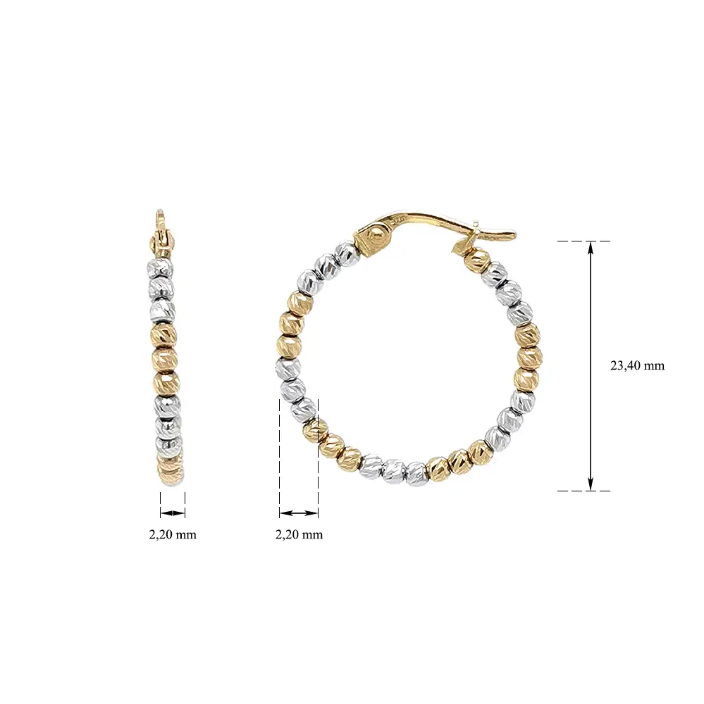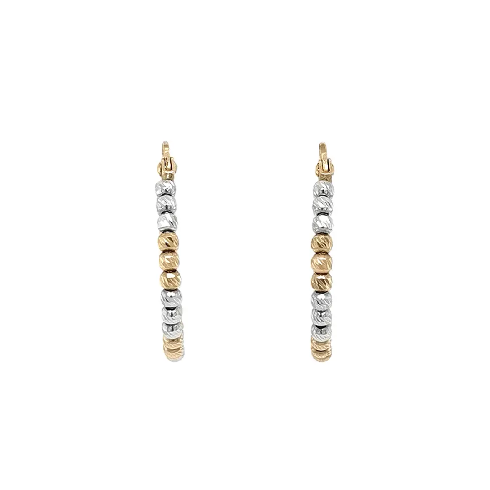Gold Hoop Earrings in Two-Tone Gold with Beaded Design