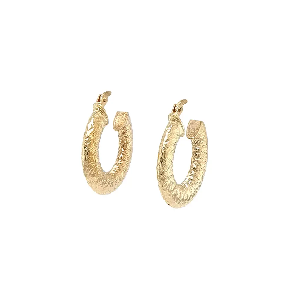 Gold Hoop Earrings with Engraved Pattern
