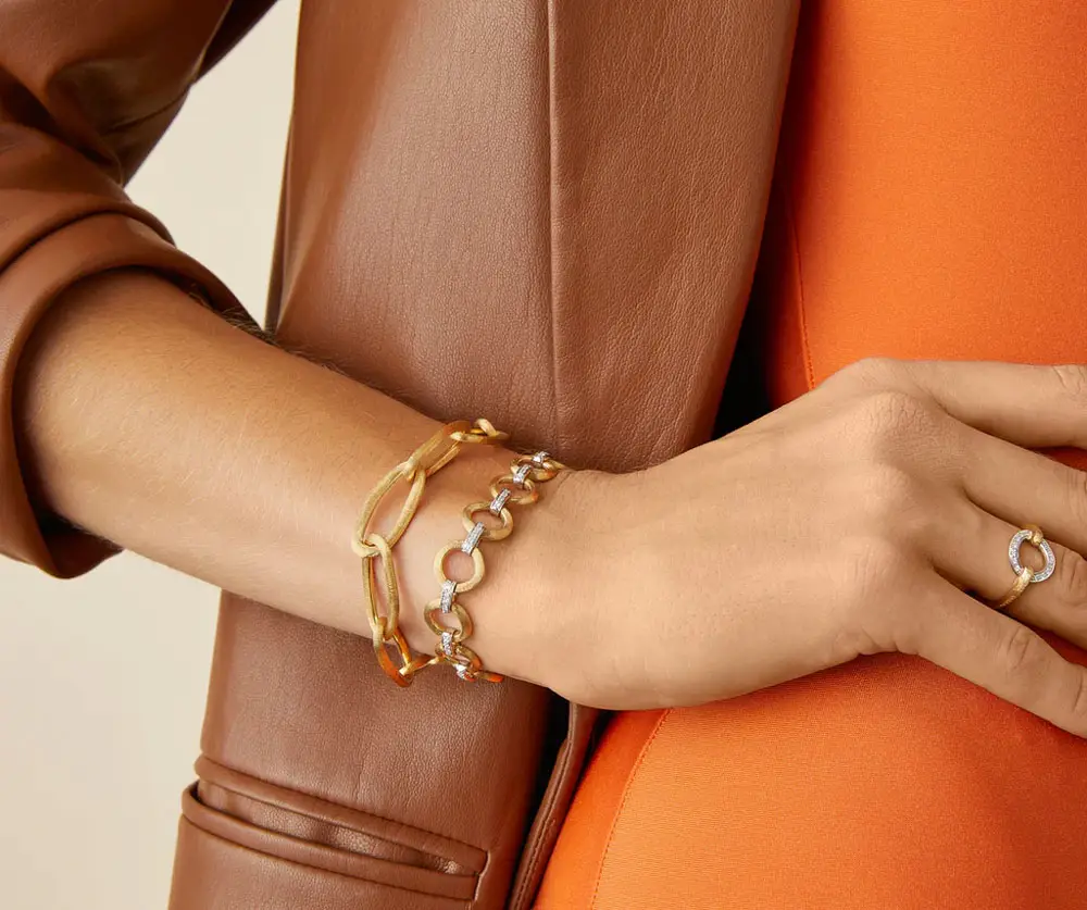 Marco Bicego is a prestigious Italian jewellery brand that, since its founding in 2000, has carried the signature of its creator – a fusion of traditional goldsmithing and contemporary design. Based in Trissino, northern Italy, each piece is brought to life by master craftsmen working with 18kt gold and carefully selected gemstones.