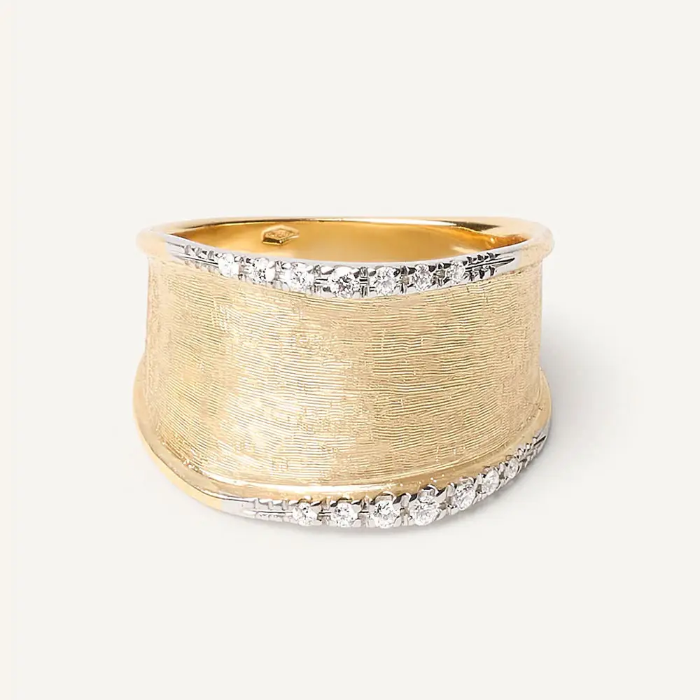 The Marco Bicego Lunaria AB550 B YW Q6 ring perfectly blends delicate charm with radiant expression. Crafted from 18 kt combined gold (750/1000), it features intricate hand-engraved details characteristic of the Lunaria collection, giving the ring a refined texture and distinct identity.