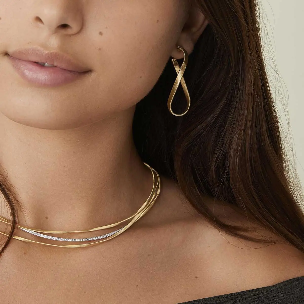 Each piece is crafted from 18kt gold and adorned with the signature hand-twisted coil technique, a hallmark of Marco Bicego. This detail creates subtle movement, texture, and depth, making the jewellery feel alive and unique. Marrakech includes necklaces, bracelets, earrings, and rings, often enhanced with diamonds for added brilliance.