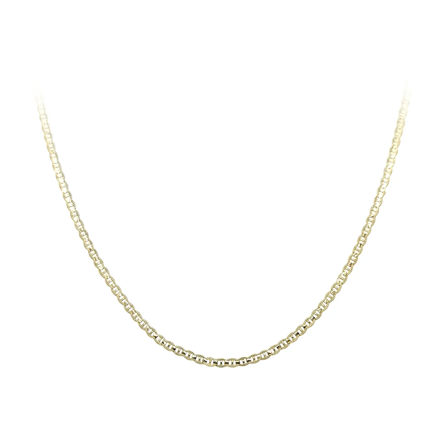 The Marina Gucci gold chain stands out with its refined structure of small oval links that create an elegant yet distinctive look. Thanks to precise finishing and the rhythmic pattern of the links, the chain offers a beautiful shine and sits harmoniously around the neck. It is perfect as a standalone piece for everyday wear, yet also pairs wonderfully with a pendant for a more personal and sophisticated expression.