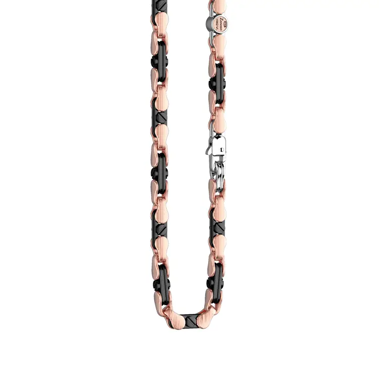 The brand has built its reputation primarily in men’s jewellery – bracelets, rings, necklaces, and cufflinks – but also offers refined women’s lines. Every Zancan jewel is the result of handmade work by master goldsmiths, blending traditional techniques with innovative materials such as carbon fibre, steel, ceramic, and rubber.