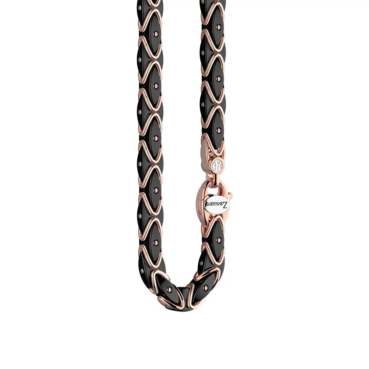 Another iconic line, Eternity, celebrates the strength of relationships through rings and bracelets adorned with infinity symbols. The Black Ceramic collection highlights the union of traditional luxury metals with innovative high-tech materials. Zancan also creates exclusive diamond lines, elevating men’s jewellery to new levels of sophistication.