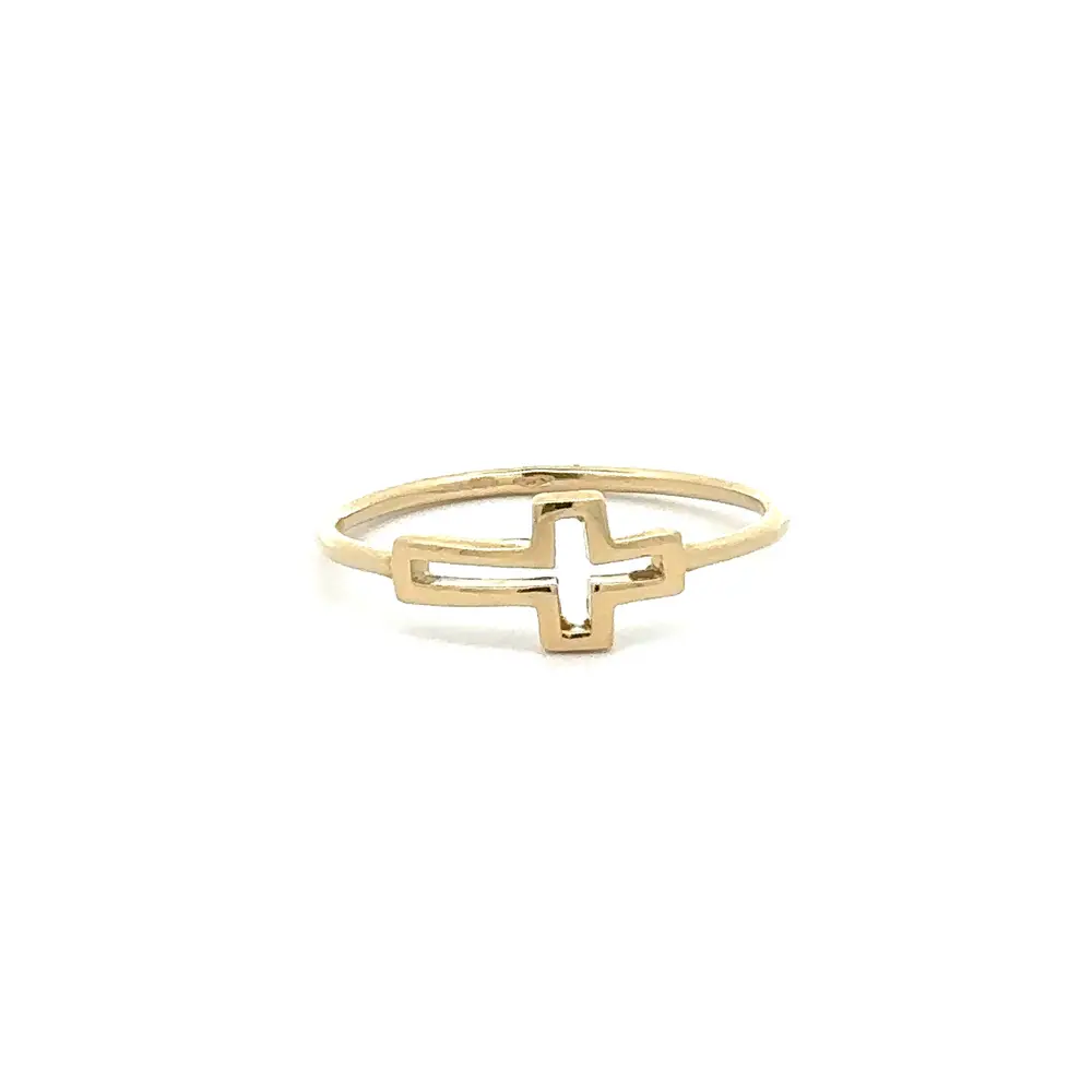 The slim band ensures lightness and comfortable wear, while the cross symbol adds personal meaning and a refined visual accent. This ring is an ideal choice for women who appreciate subtle elegance, clean lines, and jewelry with symbolic character that pairs effortlessly with other gold rings.