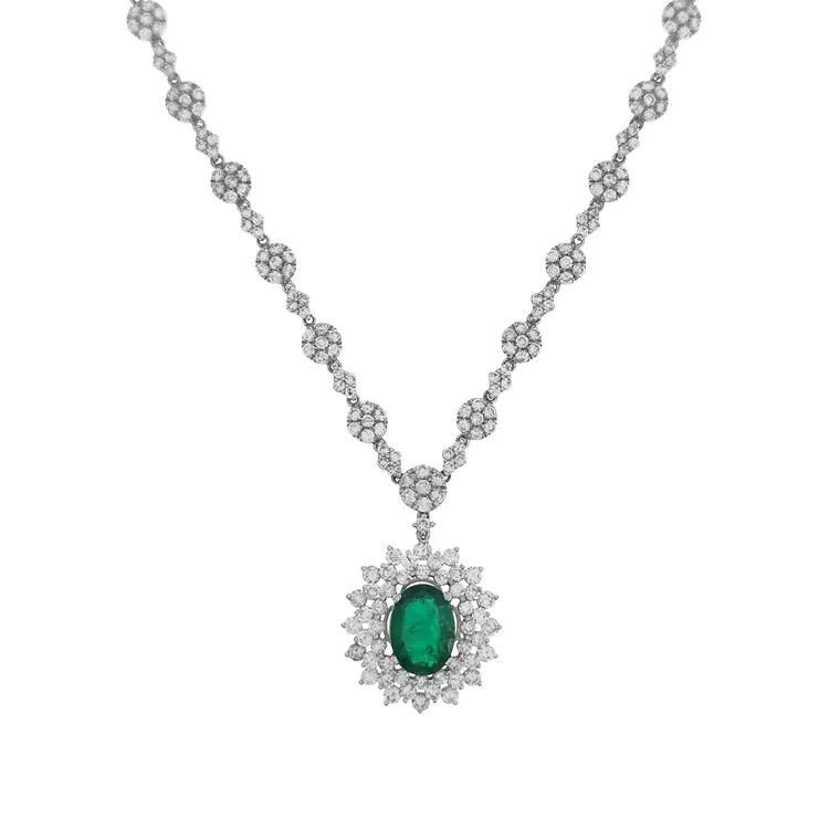 This emerald and diamond necklace by Beny Jewellery is designed for women who appreciate true luxury, elegance, and masterful craftsmanship. Made of 18 kt (750/1000) polished white gold, it captivates with its luminous sparkle and sophisticated design. Every element reflects Beny’s dedication to excellence and timeless beauty.