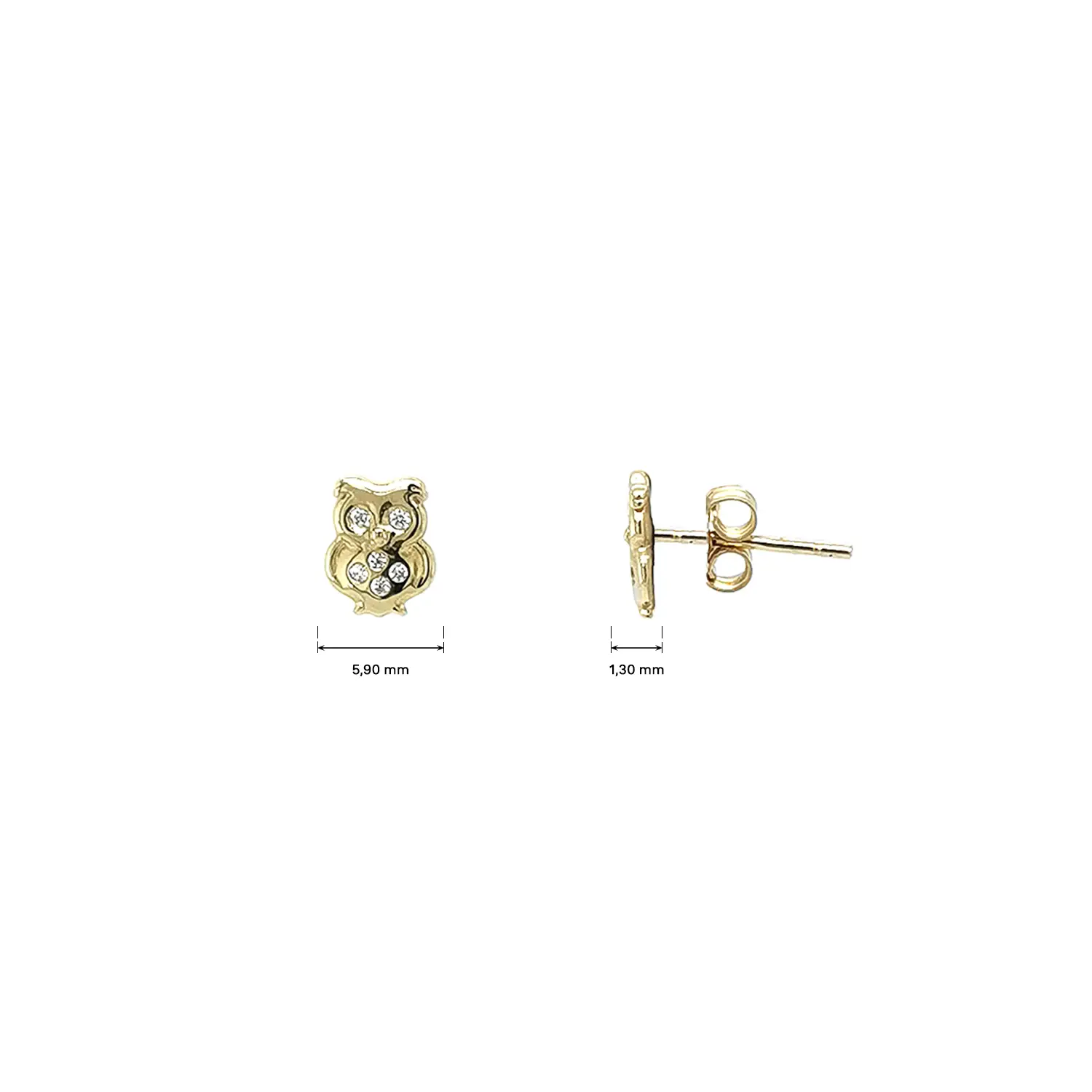 Sparkling clear zirconia stones set into the owl’s body add brilliance and a captivating light effect that stands out with every movement. The earrings feature classic butterfly backs, ensuring comfort and secure wear—even for smaller children’s ears. They are an ideal choice for young girls, teenagers, and women who appreciate a small, playful yet elegant gold jewel carrying the symbolism of wisdom and protection.