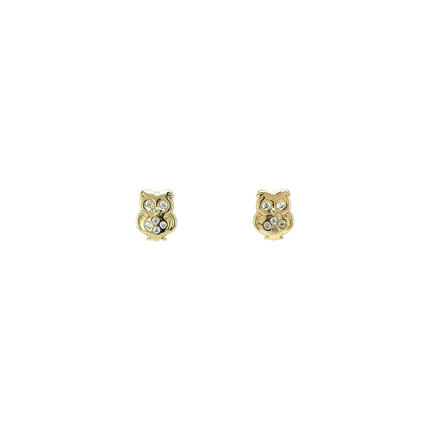 Gold Owl Stud Earrings with Zirconia