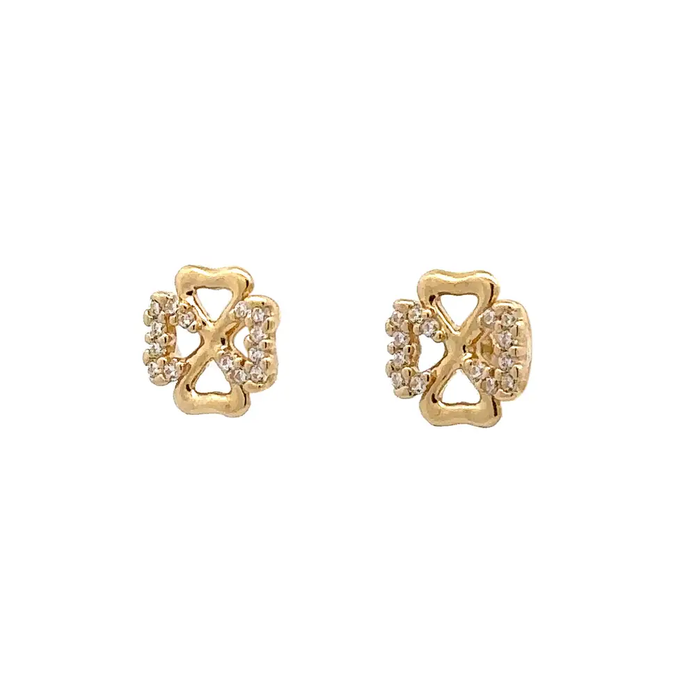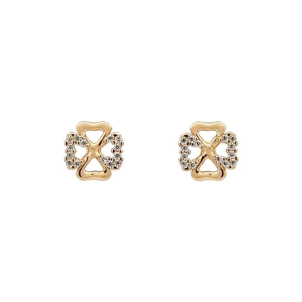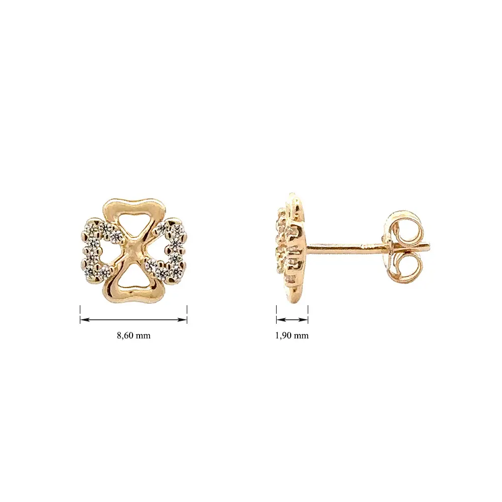 Gold Pecek Earrings Quatrefoil with Zirconias