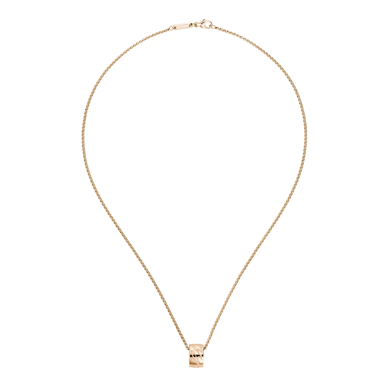 This elegant necklace from the Chopardissimo collection captures the essence of Chopard’s design language – flowing curves, graceful lines, and understated luxury. Crafted in 18 k rose gold and engraved with the iconic Chopard signature, it beautifully combines modern aesthetics with timeless refinement. The warm hue of gold enhances its feminine and radiant appeal.